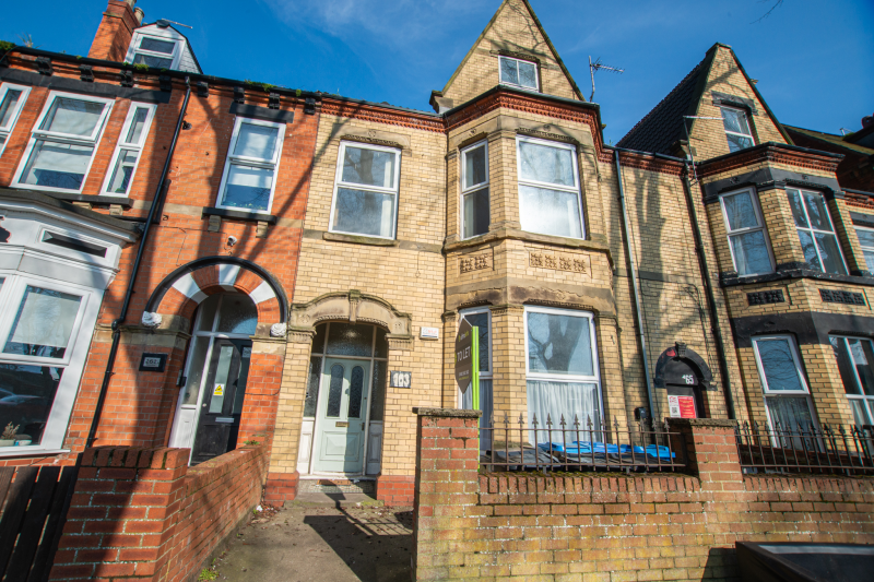 Mid-terrace property consisting of five self-contained one-bed flats with communal front entrance and rear garden.