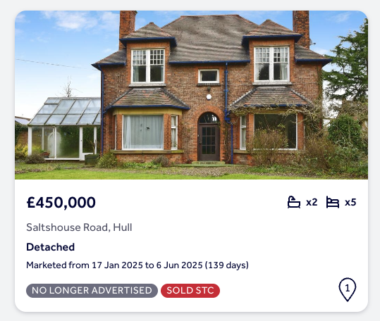 There is little in terms of direct comparables; however, see below an example of another 5-bed detached property on Saltshouse Road, which also needed to be fully renovated, listed for £450,000 in January 2025.