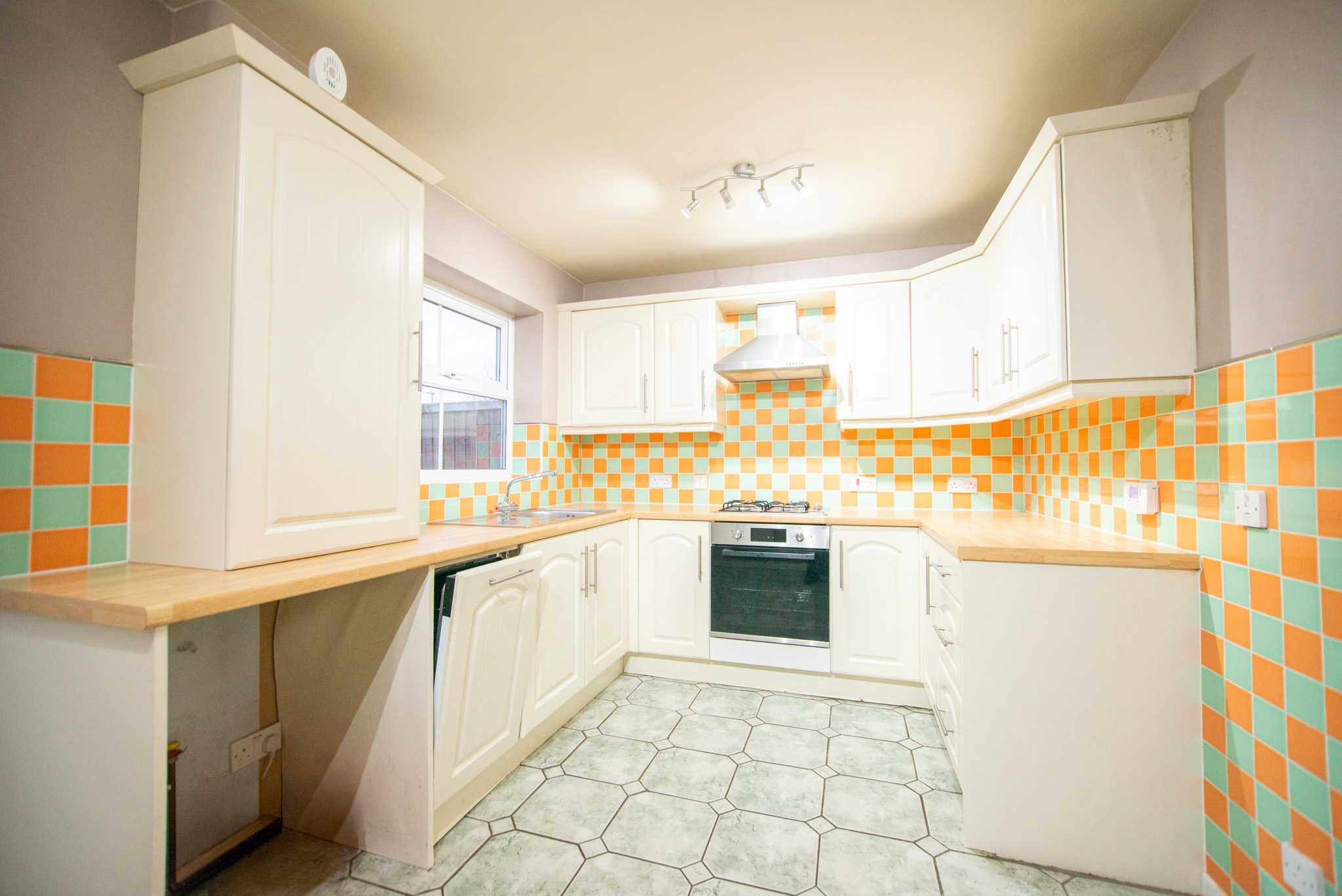 The property comprises an entrance hall, a spacious living room with an electric fire and a kitchen to the rear with a built-in hob, oven and dishwasher and enough space for a small table and chairs.