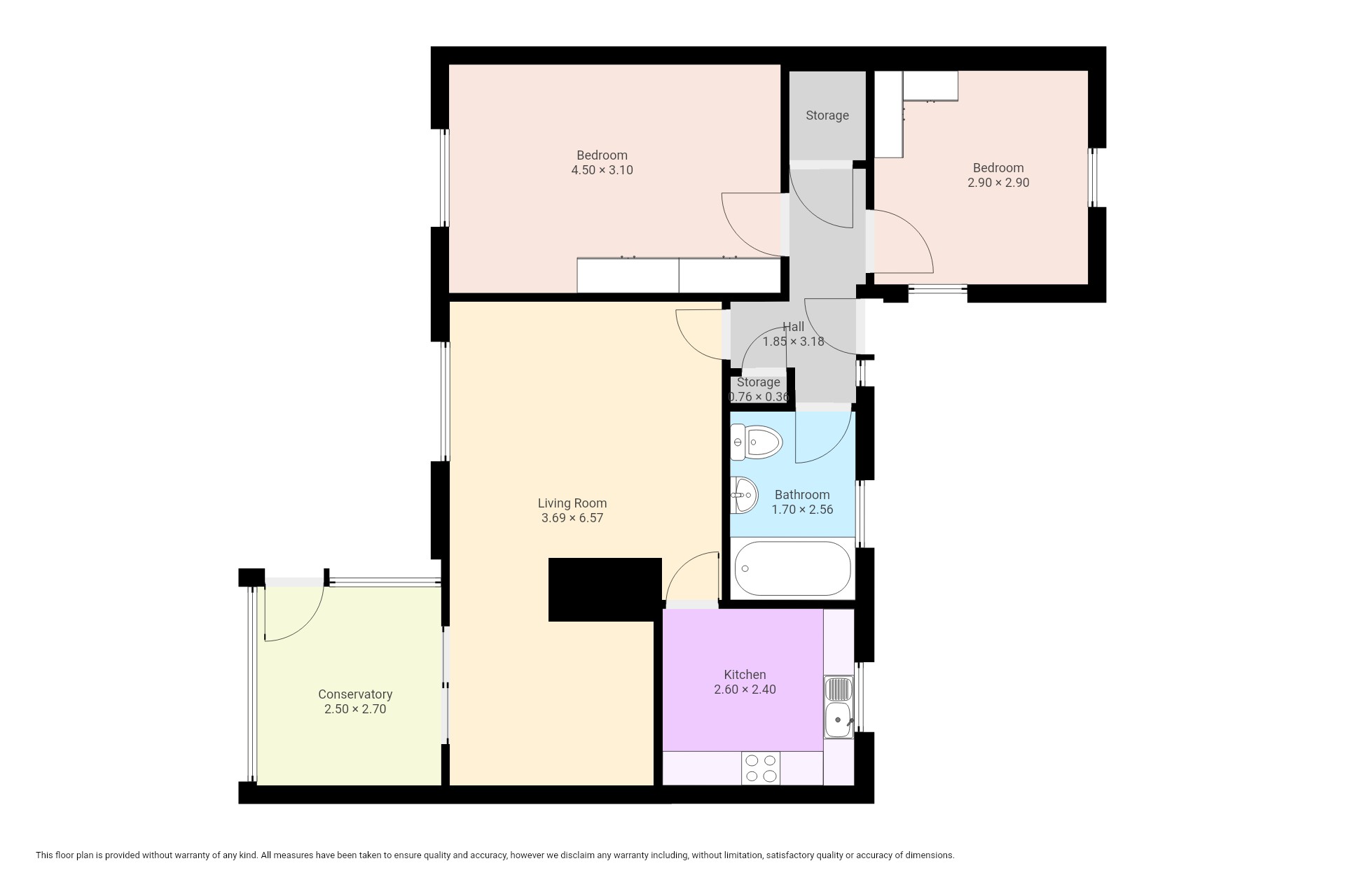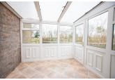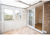 Inside the property, you'll be greeted with an entrance hall that has two handy storage cupboards. From here, you're led to the well-decorated living room with an eclectic fireplace feature that leads to a private dining room and conservatory. Off the living room is a kitchen with a built-in hob and oven. Back to the hall is where you'll find the two bedroom both with built-in wardrobe space, and a family bathroom with a shower over the bath.