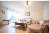 The property features a welcoming hallway with a convenient storage cupboard, a spacious living room with a Juliet balcony, a kitchen with a built-in fridge-freezer, hob and oven, and a washing machine, as well as a handy small table and chairs. There are then three double bedrooms with the master including a wall of built-in wardobes and finally there's the sleek three-piece bathroom suite with a shower over the bath.