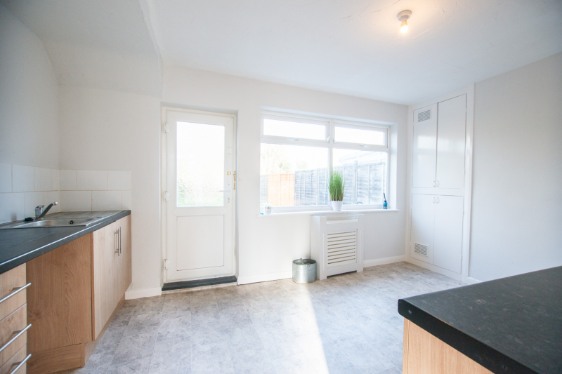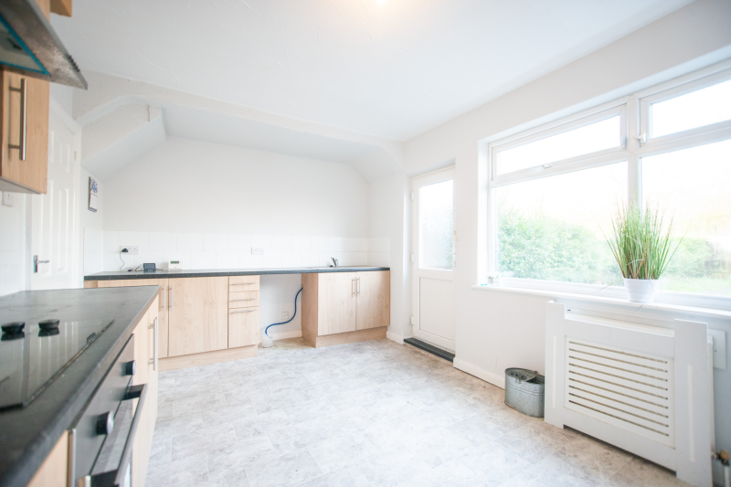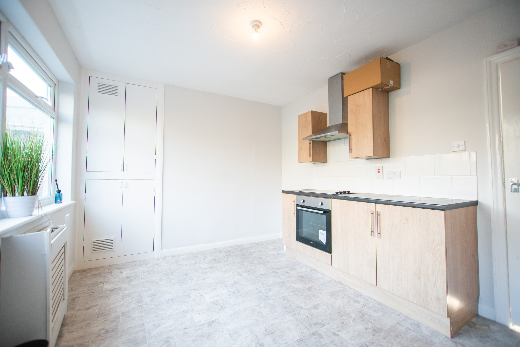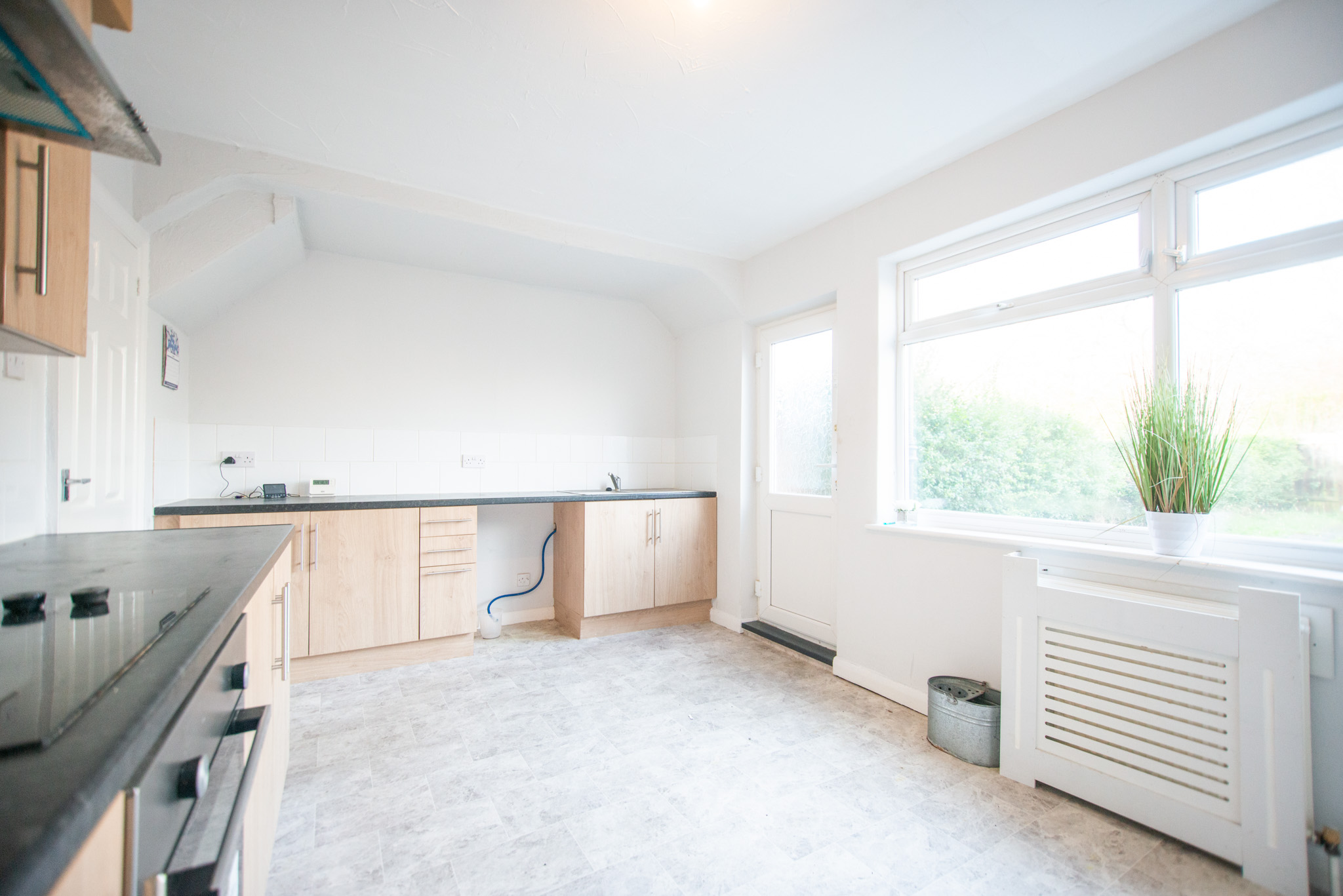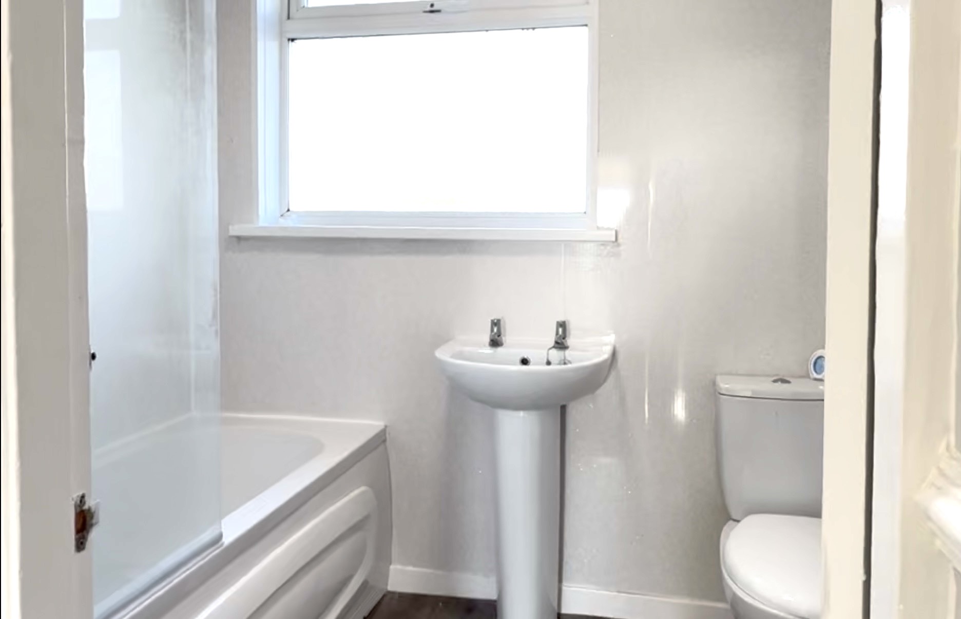 The property comprises a welcoming entrance hall, a bright living room with a bay window, a separate large kitchen with a built-in hob and oven and enough space for a table and chairs. Upstairs there are two double bedrooms, one single and a bathroom with a shower over the bath.
