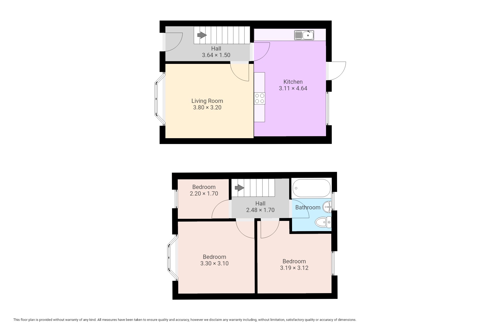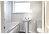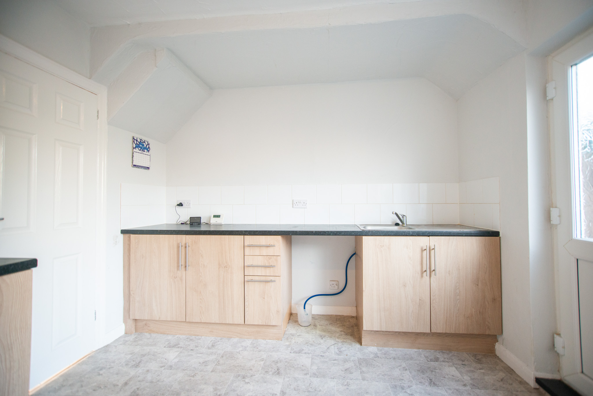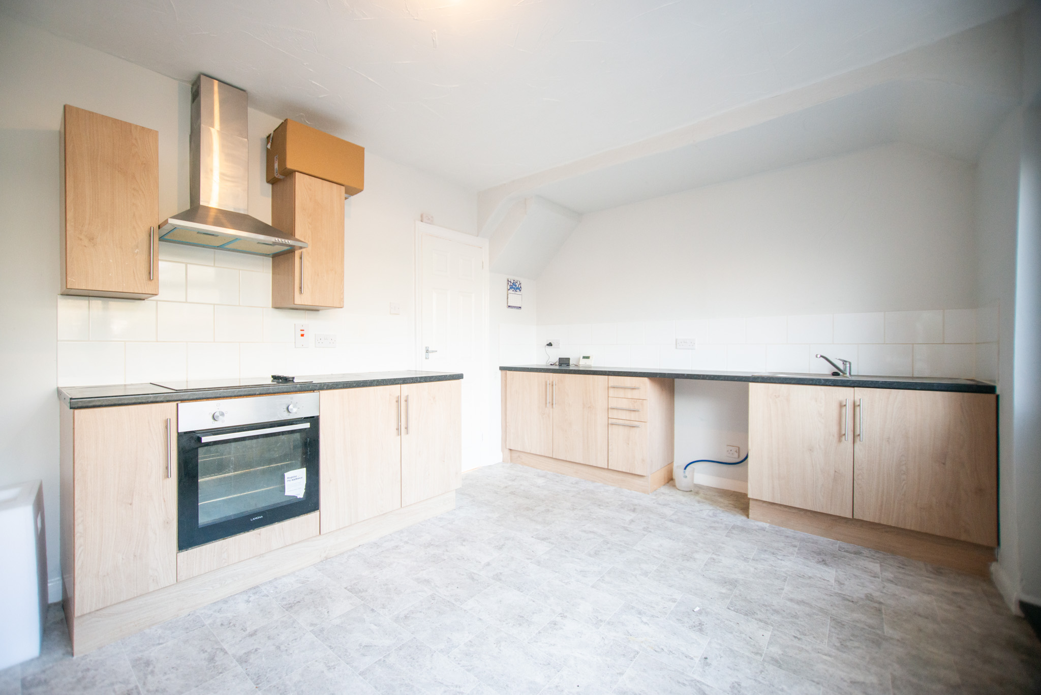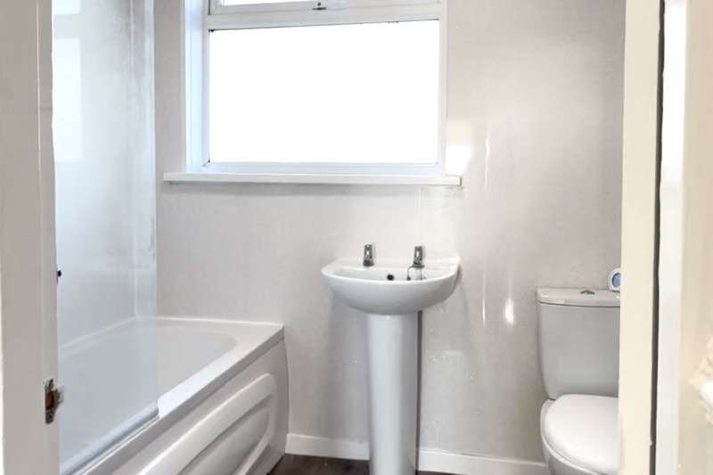 The property comprises a welcoming entrance hall, a bright living room with a bay window, a separate large kitchen with a built-in hob and oven and enough space for a table and chairs. Upstairs there are two double bedrooms, one single and a bathroom with a shower over the bath.