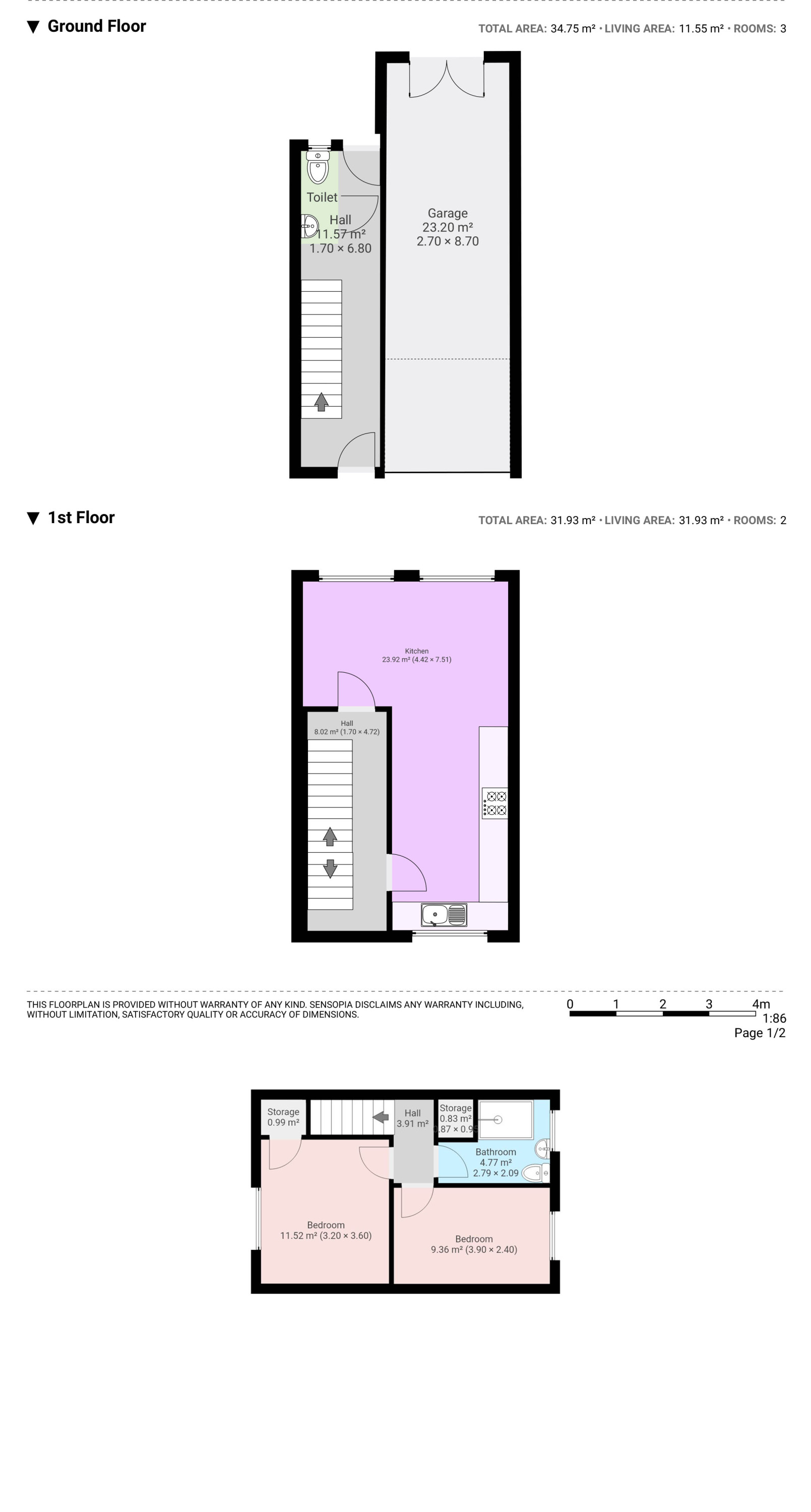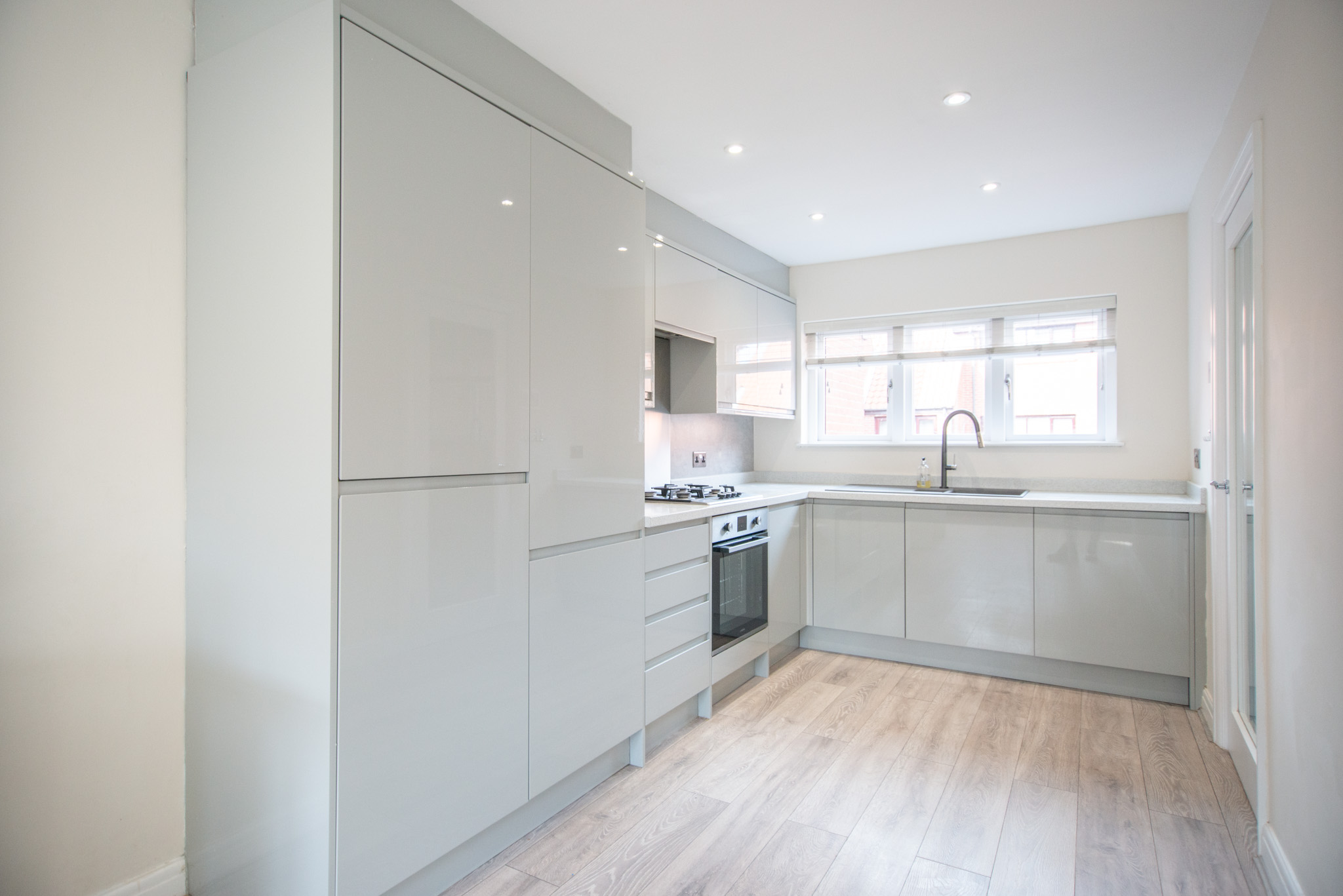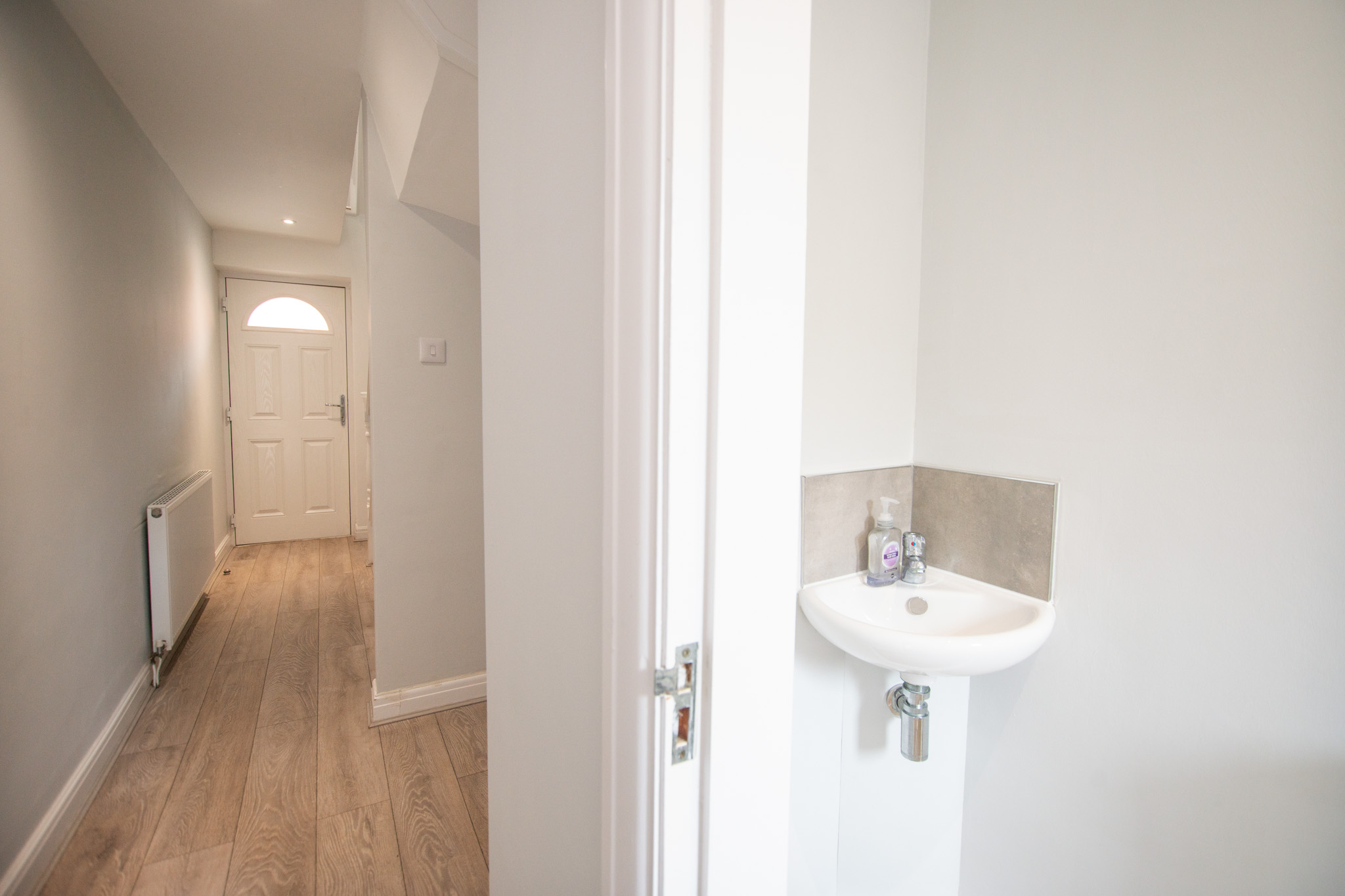 The grould floor includes an entrance hallway with wood-effect flooring, a cloackroom/ WC and internal access to the garage and walled garden. On the first floor is the modern open plan living and kitchen space with built in appliances including oven and hob and fridge/ freezer. Up the stairs on the second floor is two very good sized double bedrooms with built in stoarge and the three piece shower room with a vanity sink unit.