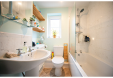 Upstairs is where you'll find the two well-decorated bedrooms and the three-piece bathroom suite with a shower over the bath.