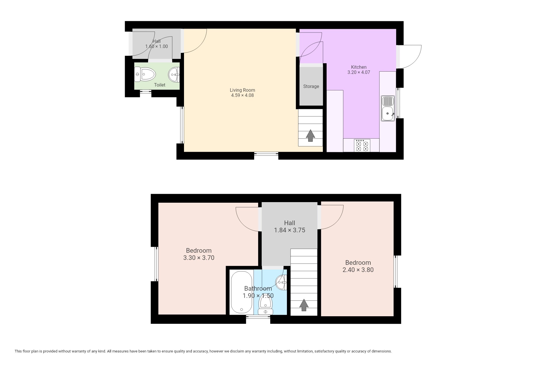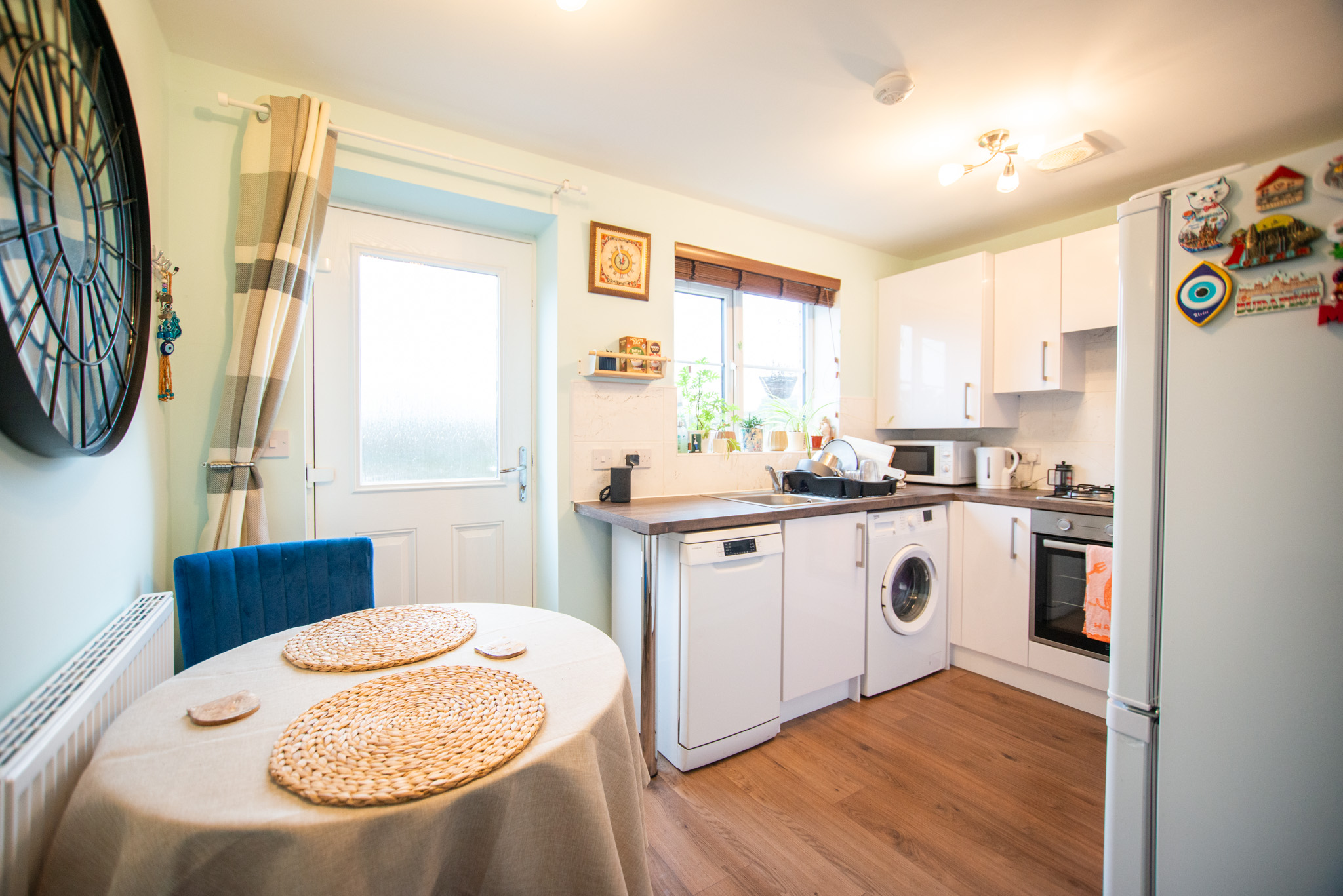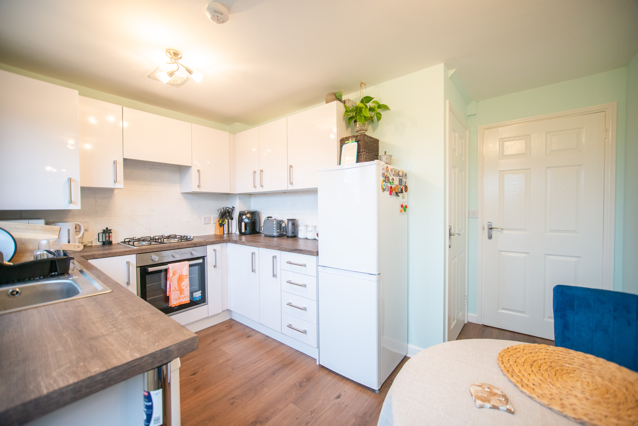The property comprises an entrance hall with a downstairs W/C, a spacious living room, a sleek kitchen with access to the handy understair storage cupboard, enough space for a small table and chairs and access to the grassed rear garden.