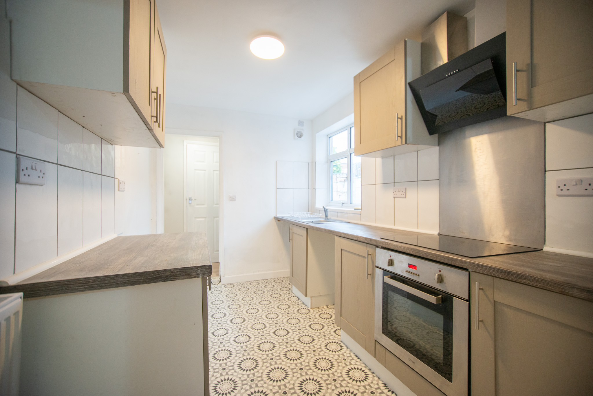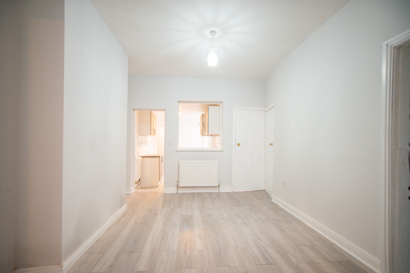 The property comprises an entrance hall that leads to the open-plan living/dining room, off this room is the half bathroom with a sink and bath, next to this is the modern kitchen with a built-in hob and oven then past this room is the toilet and access to the small rear patio.