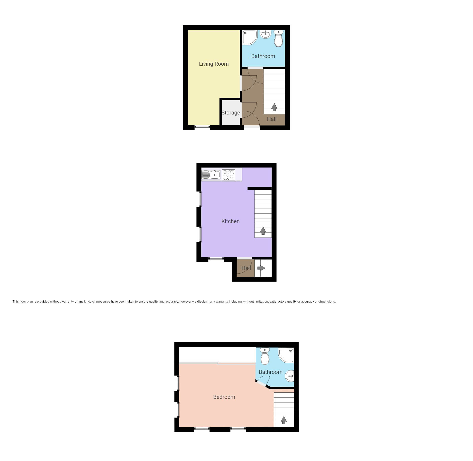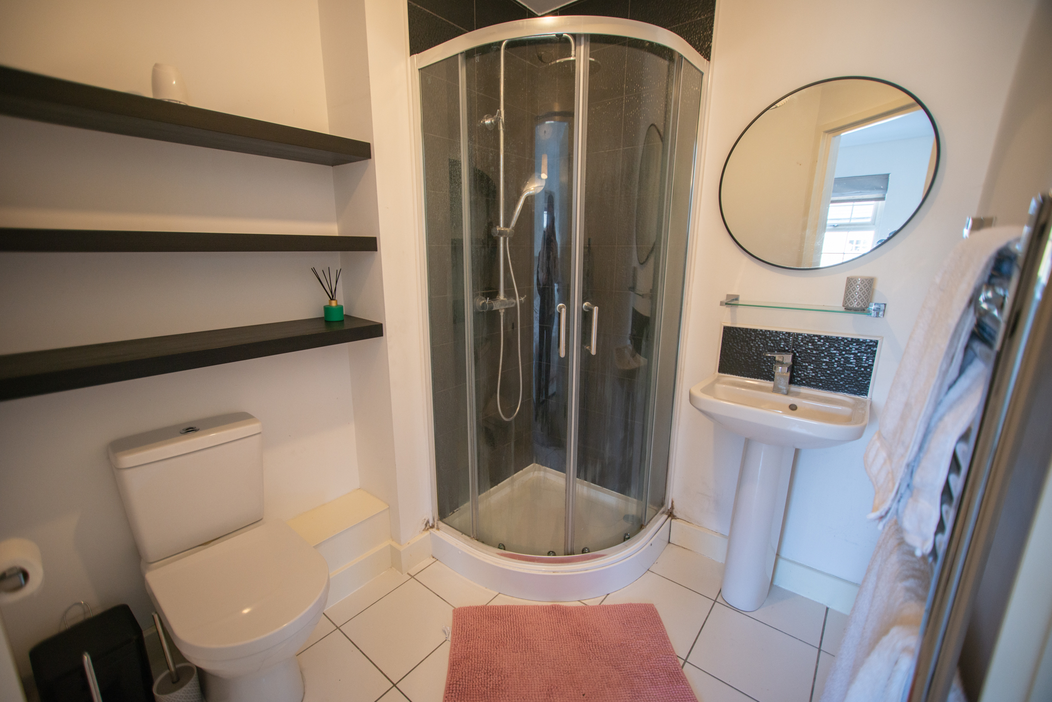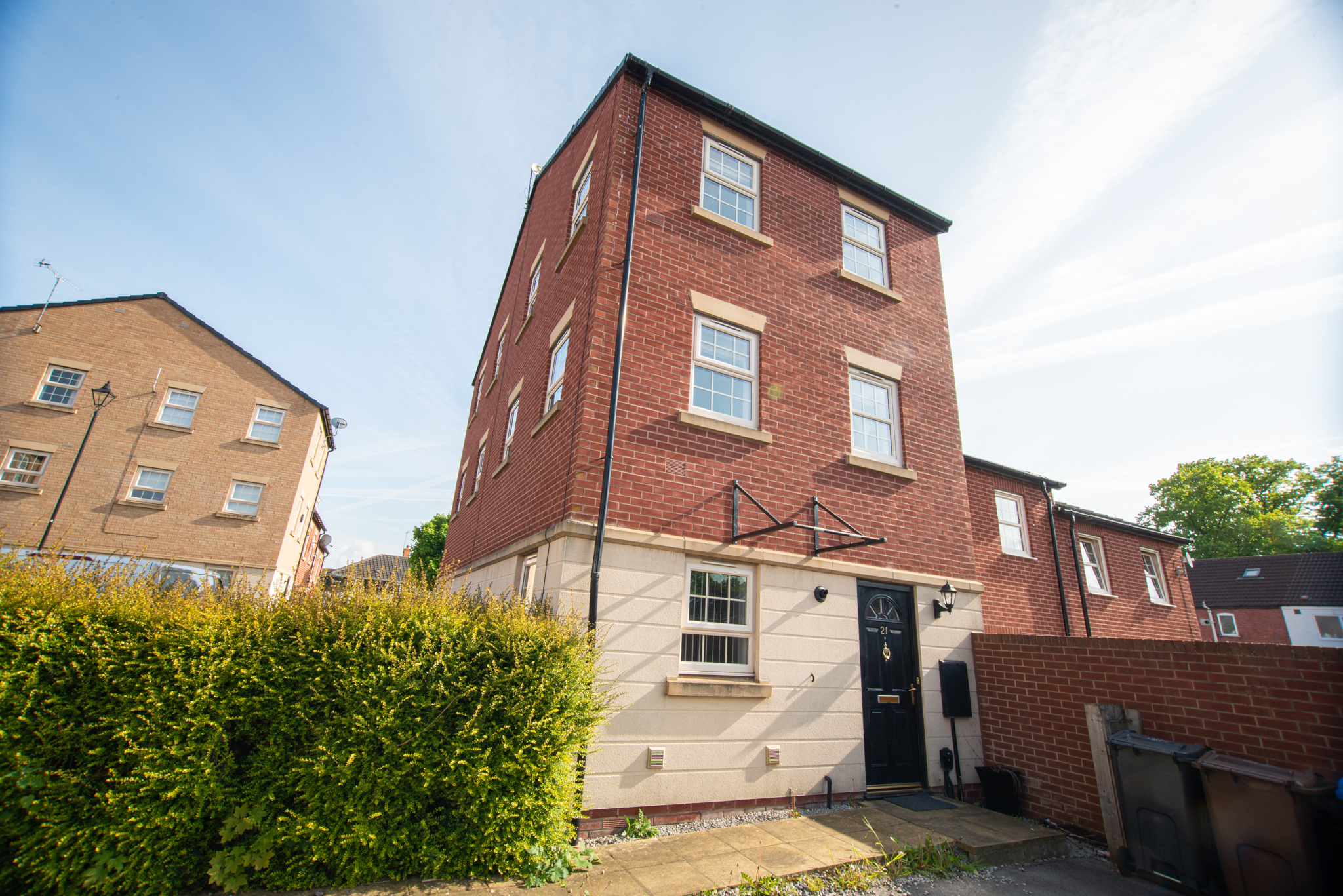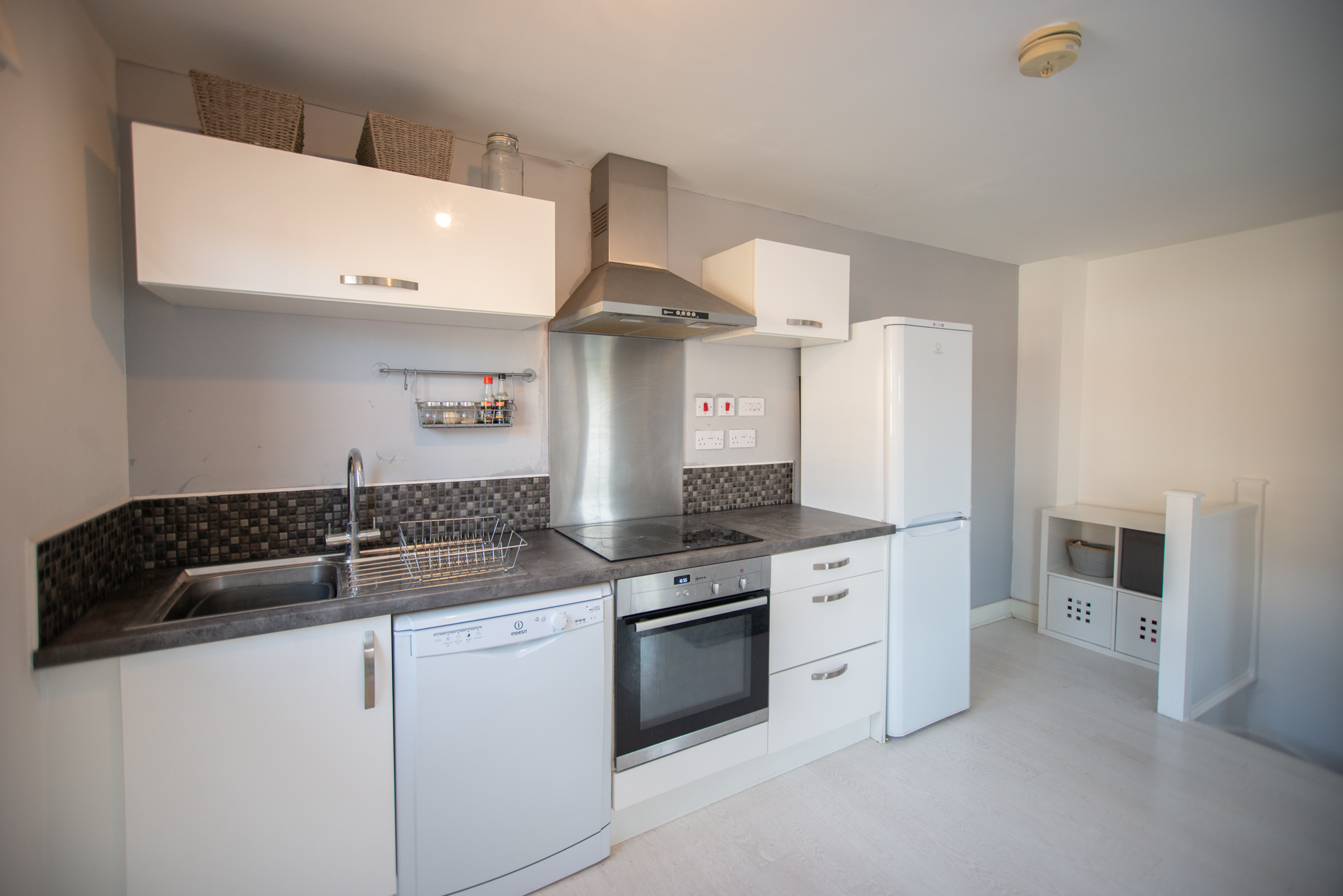 The ground floor comprises an entrance hall, a storage cupboard, a cosy bedroom and a shower suite bathroom. The first floor offers a bright and spacious kitchen/living room with a built-in hob and oven. Finally, the second floor is where you'll find the second double bedroom with built-in wardrobes and a shower suite en suite.