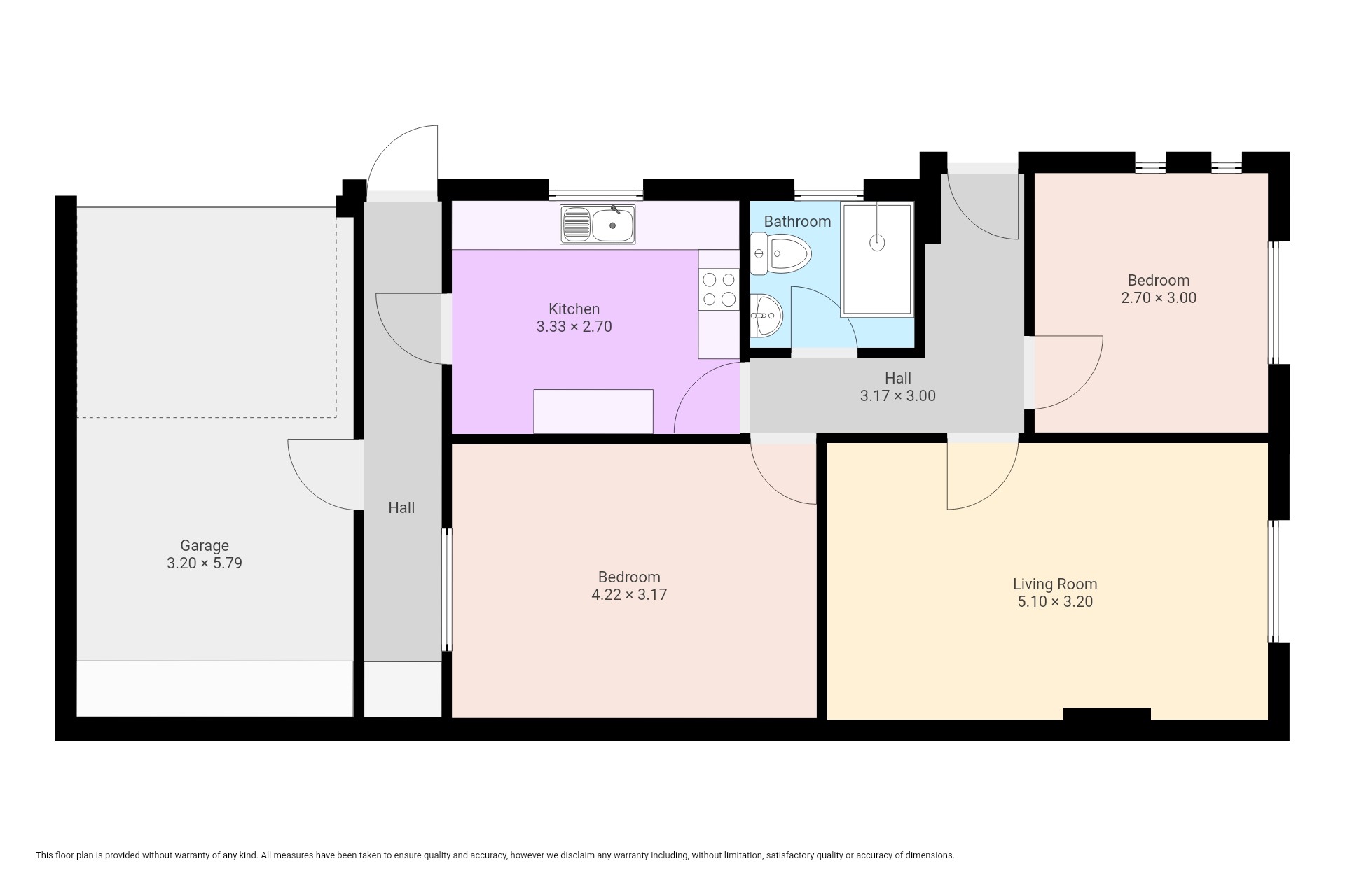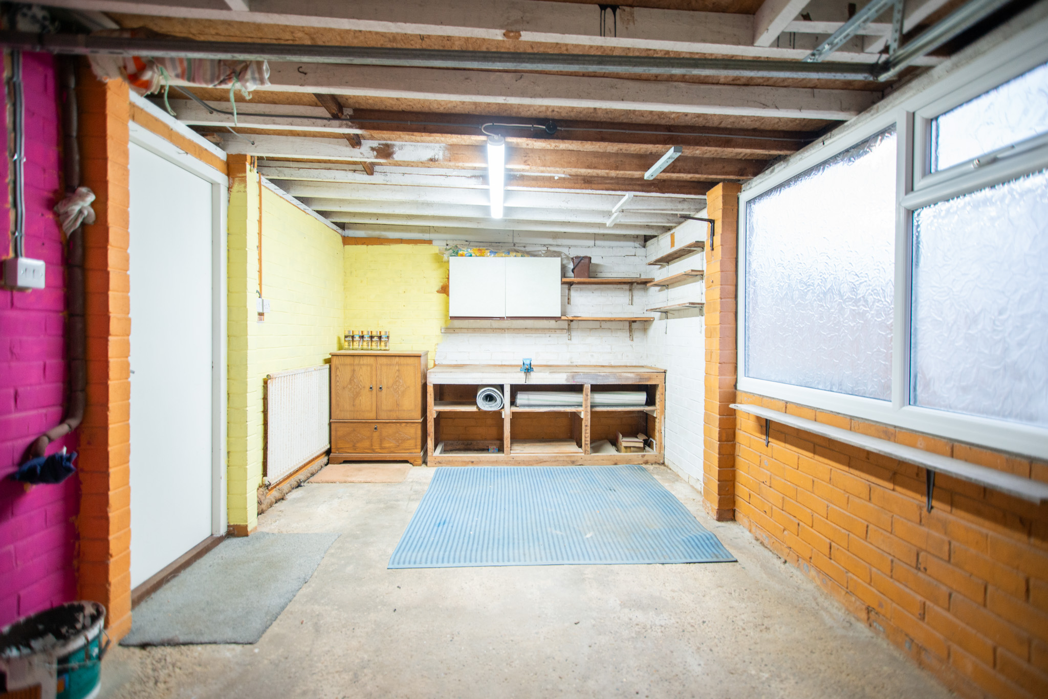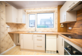 The property comprises an entrance hall, a good-sized living room with a decorative fireplace, two double bedrooms, a newly installed kitchen with a built-in hob and oven, a shower suite bathroom and a single garage with worktop space.