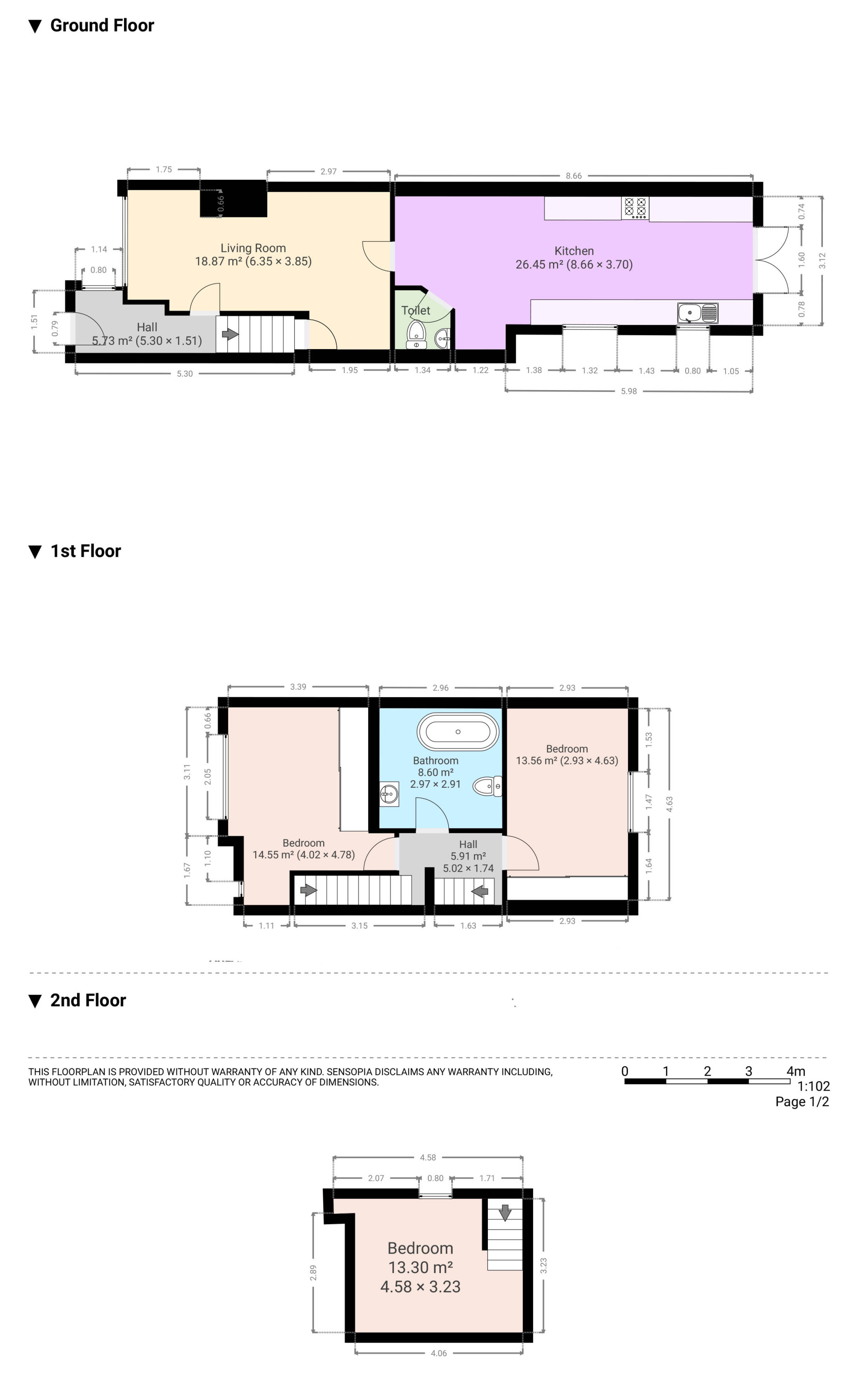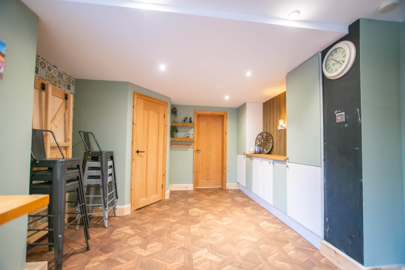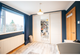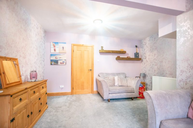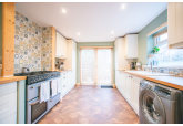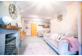 The ground floor features a welcoming entrance hall leading to well well-decorated living room. To the rear, there is a spacious kitchen complete with a practical fold-out dining table, a convenient ground-floor W/C, and direct access to a larger-than-average garden.