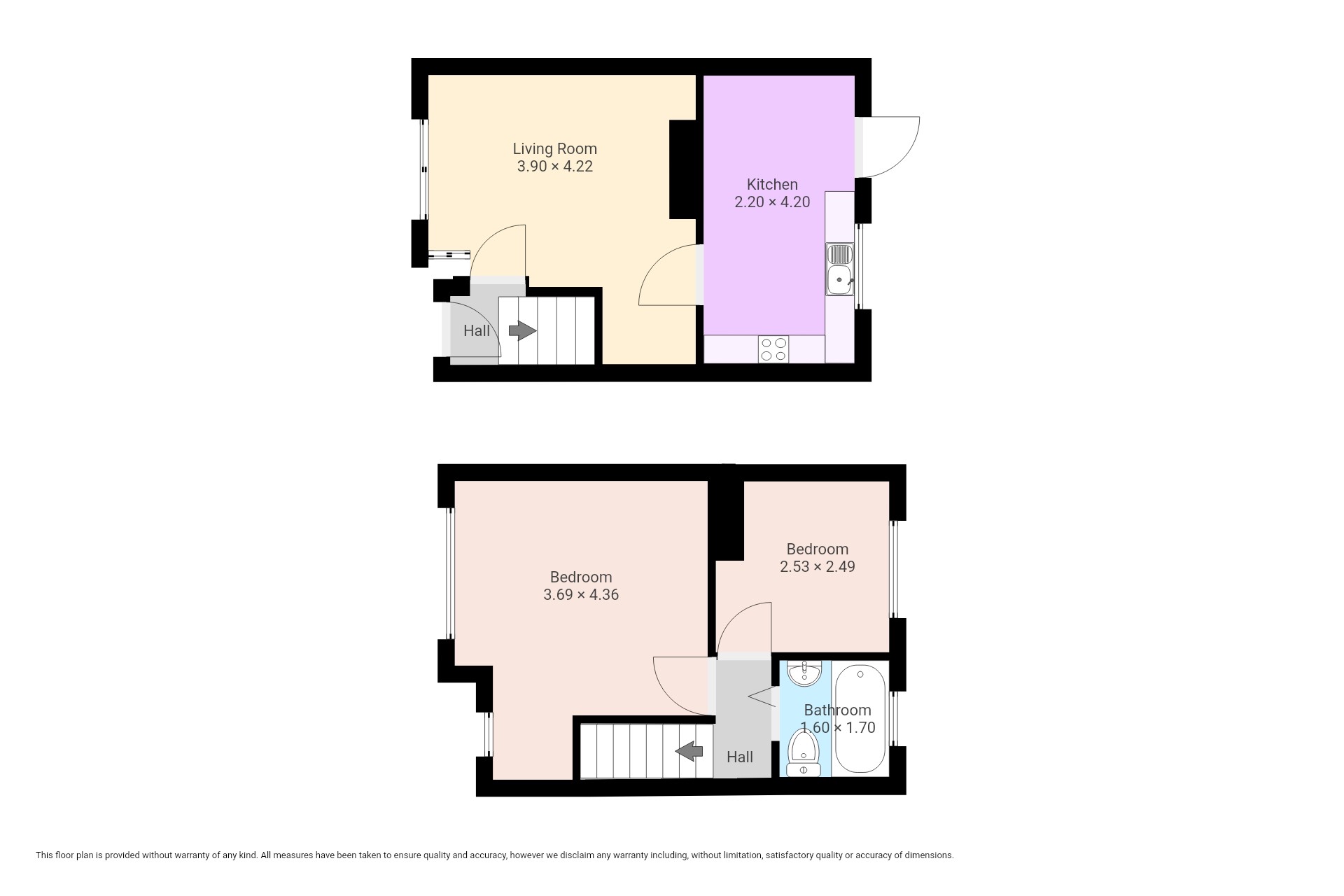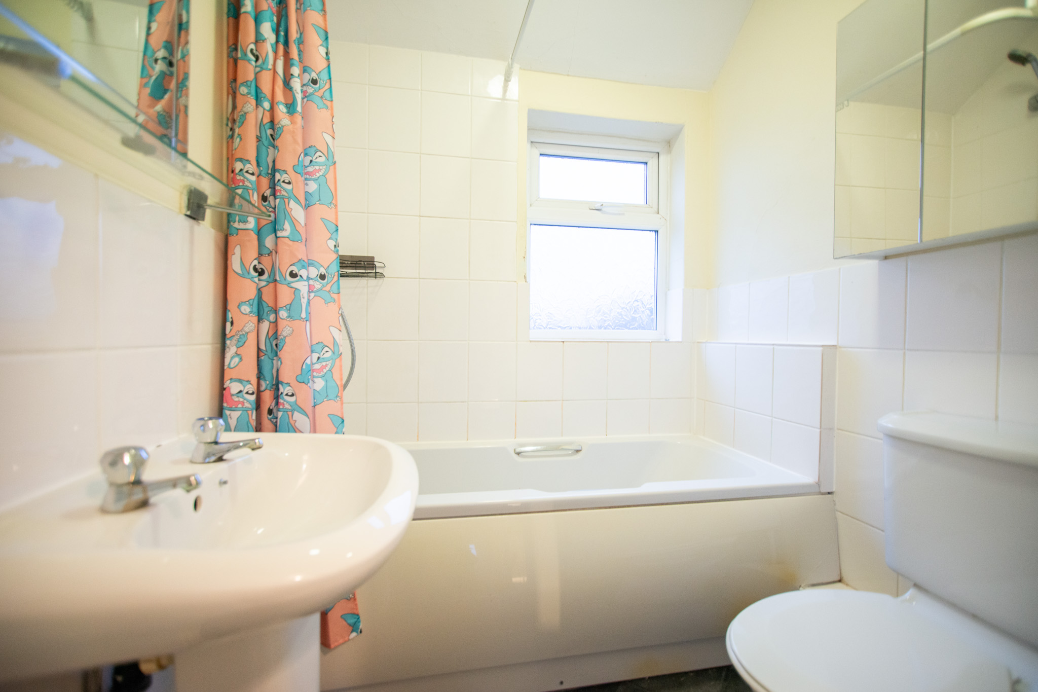 The property comprises a small entrance hall, a living room that leads through to the kitchen and access to the good-sized rear garden. On the first floor, there are two double bedrooms and a bathroom with a shower over the bath.