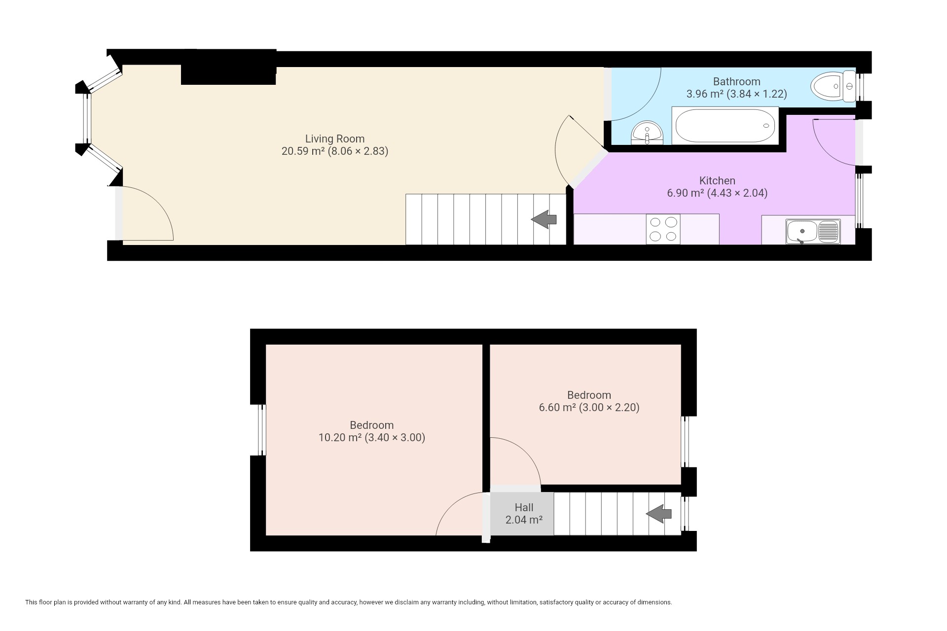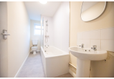 The property comprises a long living/dining room with a bay window, towards the rear is the kitchen with a free-standing fridge/freezer and oven/hob and access to the small rear patio. Next to this room is the bathroom with a shower over the bath.