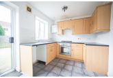 The property comprises an entrance hall, a living room that leads to the rear kitchen, which has a built-in breakfast bar and has access to the grassed and paved garden. Upstairs, there is one larger bedroom with a storage cupboard and a slightly smaller second room, and a stylish bathroom with a shower over the bath.