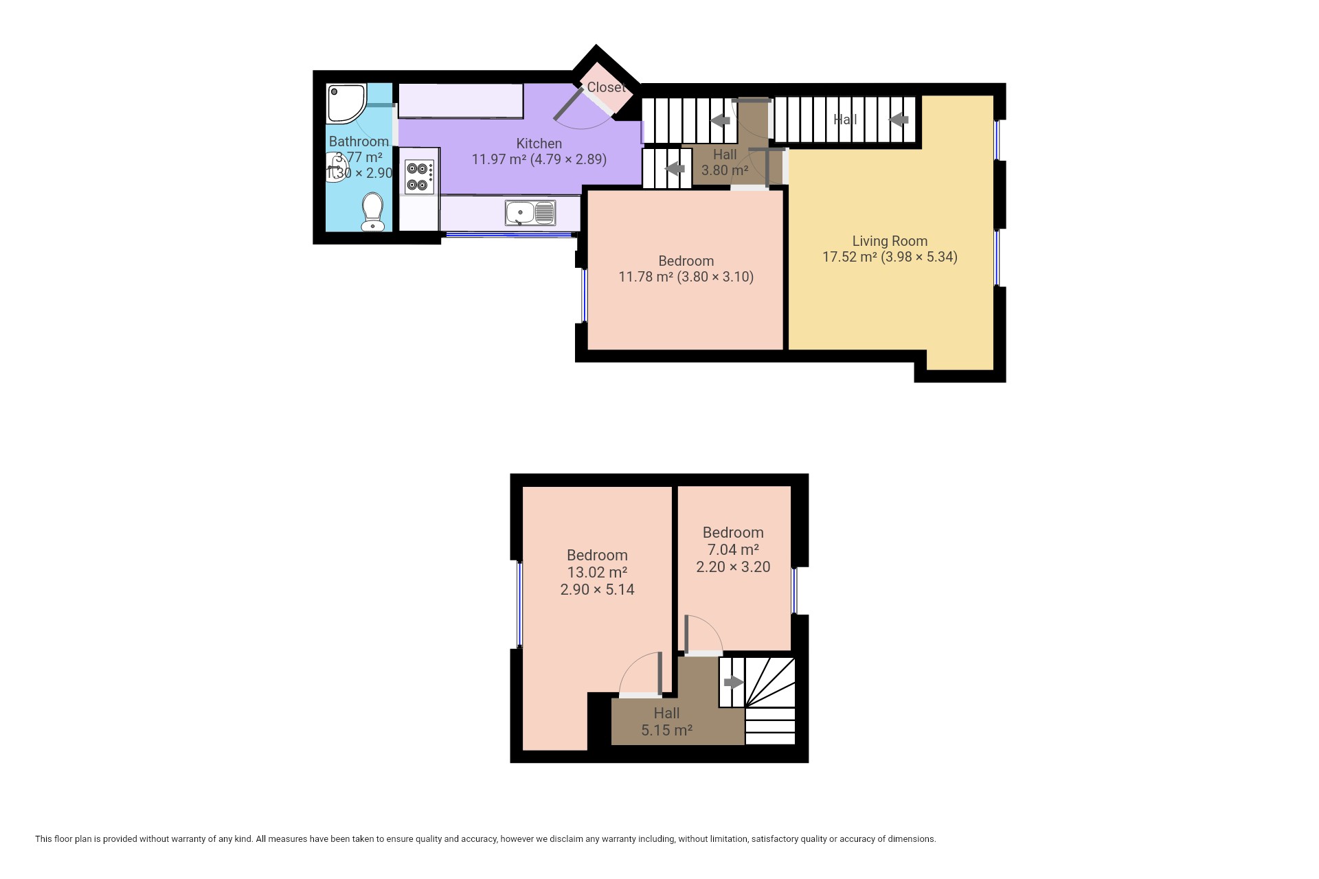 When you enter this property you are greeted with a set of stairs that take you to up to the main rooms of the property. On this first floor, there is a large living room, a kitchen, a bathroom and a double bedroom. On the second floor, there are an additional two loft-style bedrooms.