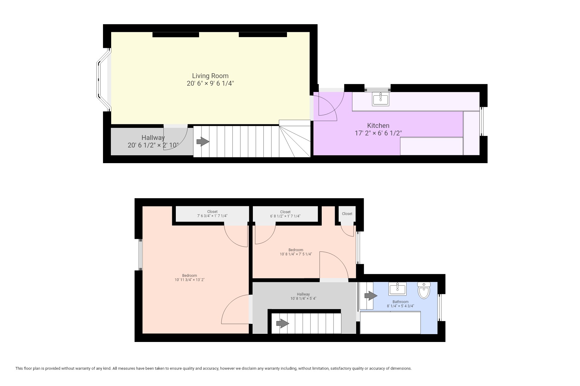 The property comprises an entrance hall, a good-sized living & dining room that leads to the sleek kitchen. The first floor features a generous-sized bathroom and two well-decorated double bedrooms.