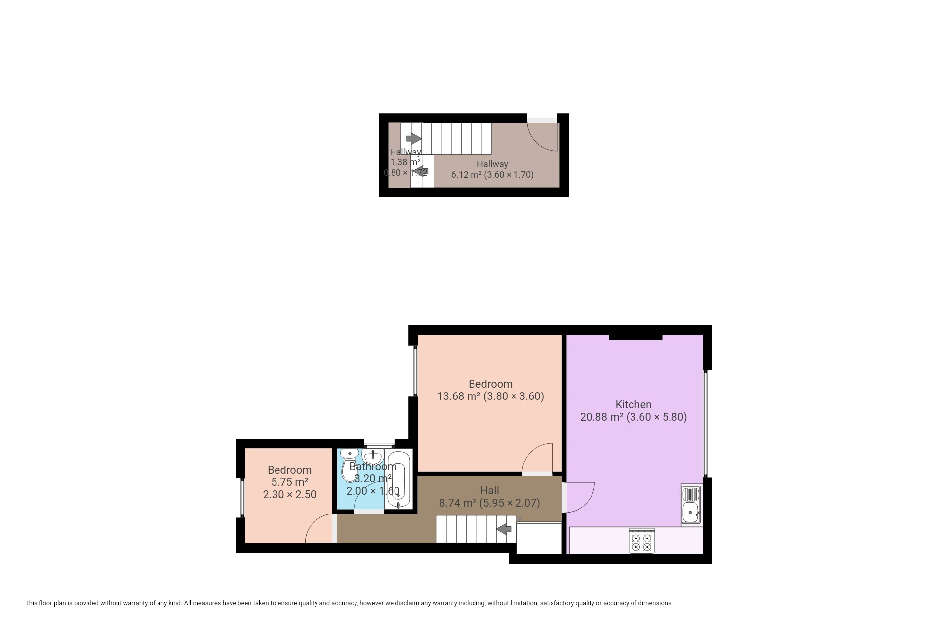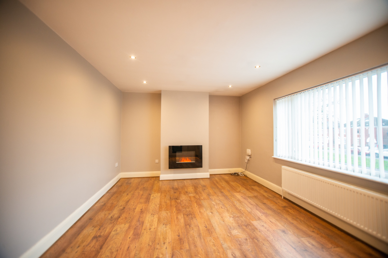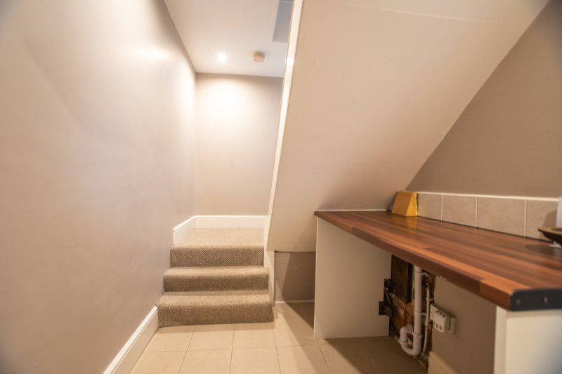 You enter the property via the side door. As you enter you are greeted with an entrance hall which has space for a washing machine then up the stairs, there are two well-decorated double bedrooms, a three-piece bathroom suite and a modern kitchen/living room with a built-in electric fireplace, a gas hob and an oven and a built-in fridge freezer.
