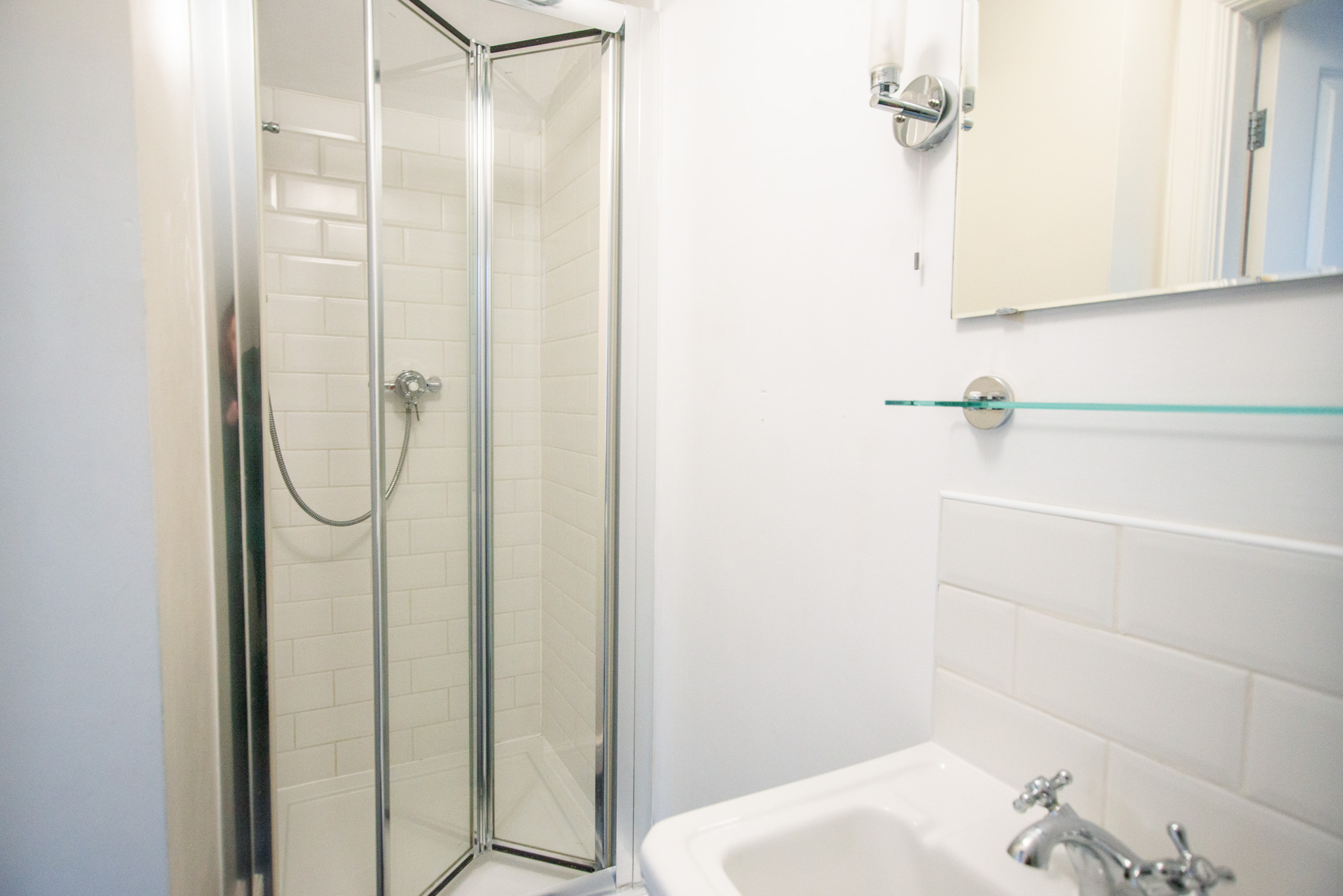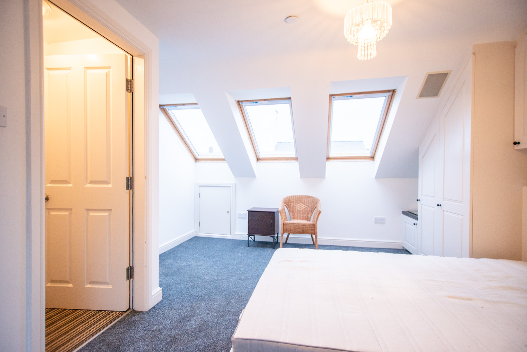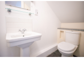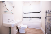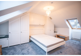 This house comprises a hall with an understairs cupboard that houses a washing machine, a stylish built-in kitchen with an electric hob and built-in appliances, attached to this room is the large living room with a floor-to-ceiling window. Upstairs are the first two full furnished double bedrooms and the family bathroom with a shower over the bath. Then, finally, on the top floor, there is the loft-style master bedroom with a shower en suite.