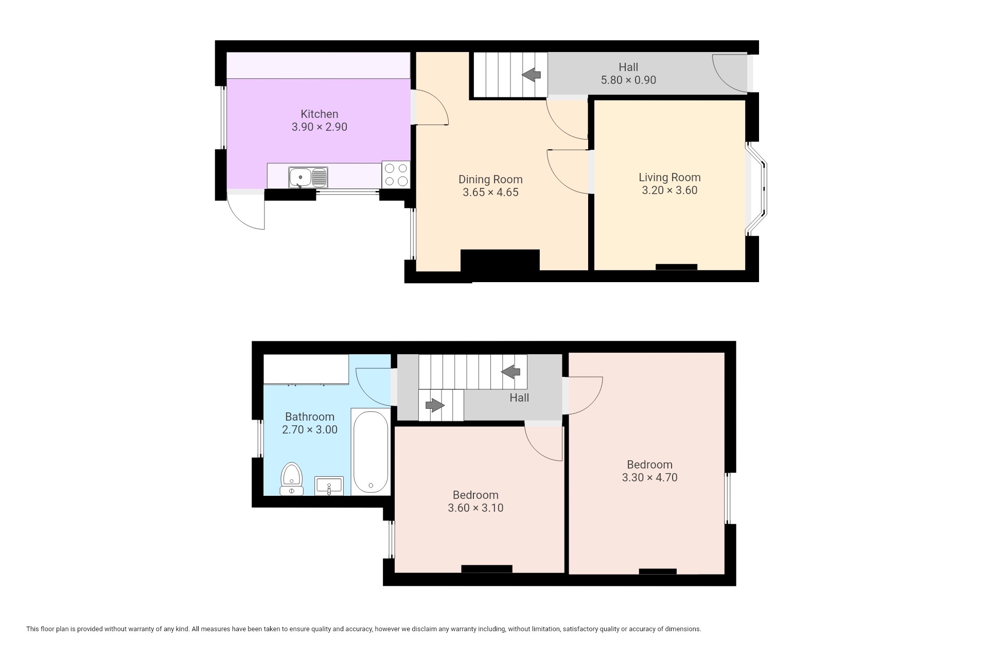 On the first floor are the two double bedrooms and a three-piece bathroom suite with a shower.