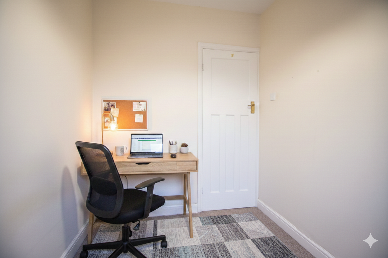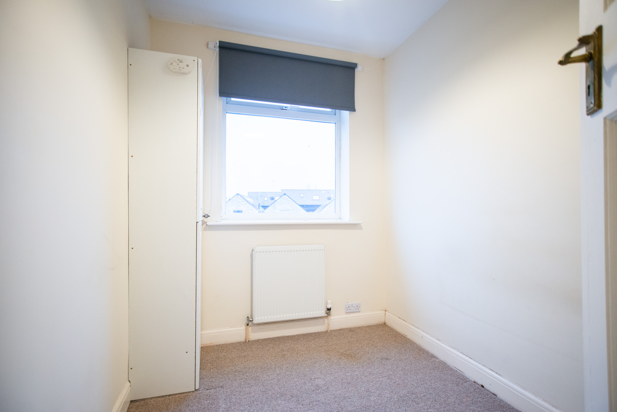 The property comprises a good-sized living room that leads to the rear kitchen and ground-floor bathroom with a walk-in shower. Upstairs, there are two double bedrooms with one including fitted wardrobes and an additional smaller room which would also make a good office space.