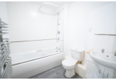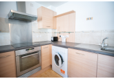 The property comprises an entrance hall, an open/plan living/kitchen with floor-to-ceiling windows and a built-in hob and oven. There is also a double bedroom with built-in wardrobes and a bathroom with a shower over the bath.