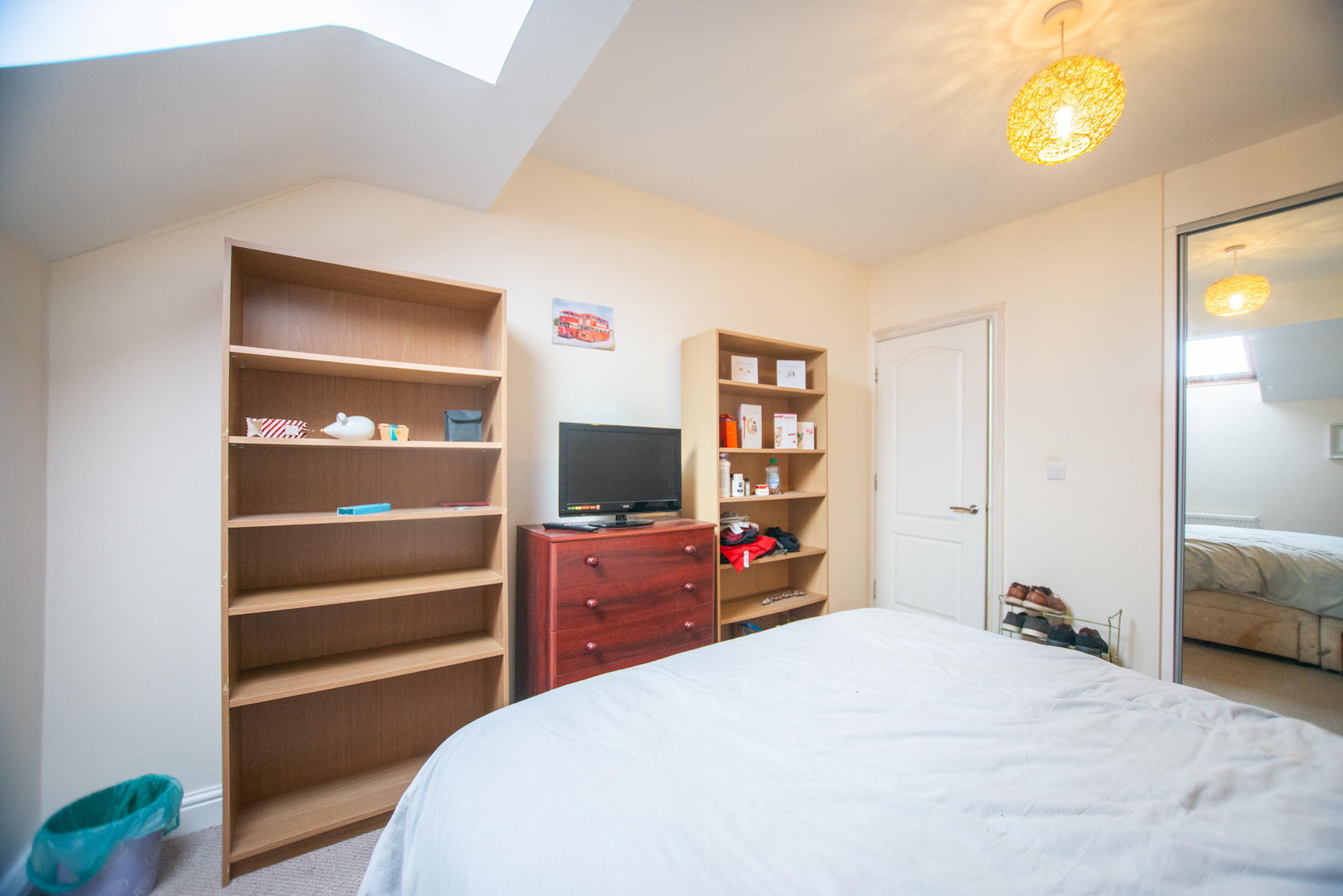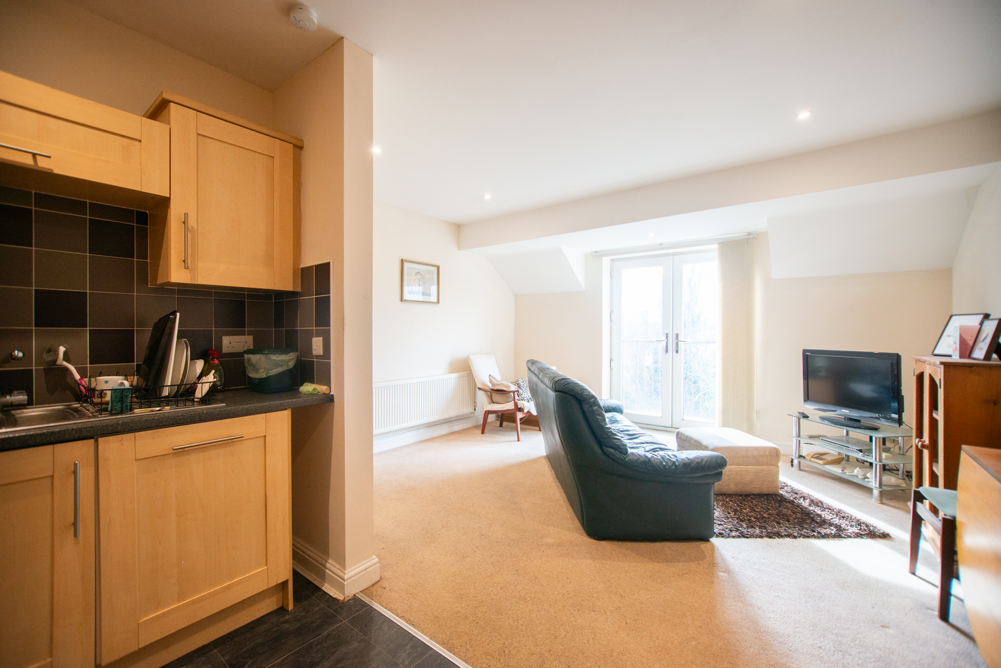 The property comprises an entrance hall with a storage cupboard, an open plan living kitchen with a built-in fridge, hob, oven and an integrated fridge freezer, as well as giving access to the Juliet Balcony. There are two good-sized bedrooms, both with skylights and built-in wardrobes, and lastly, a three-piece bathroom suite with a shower over the bath.