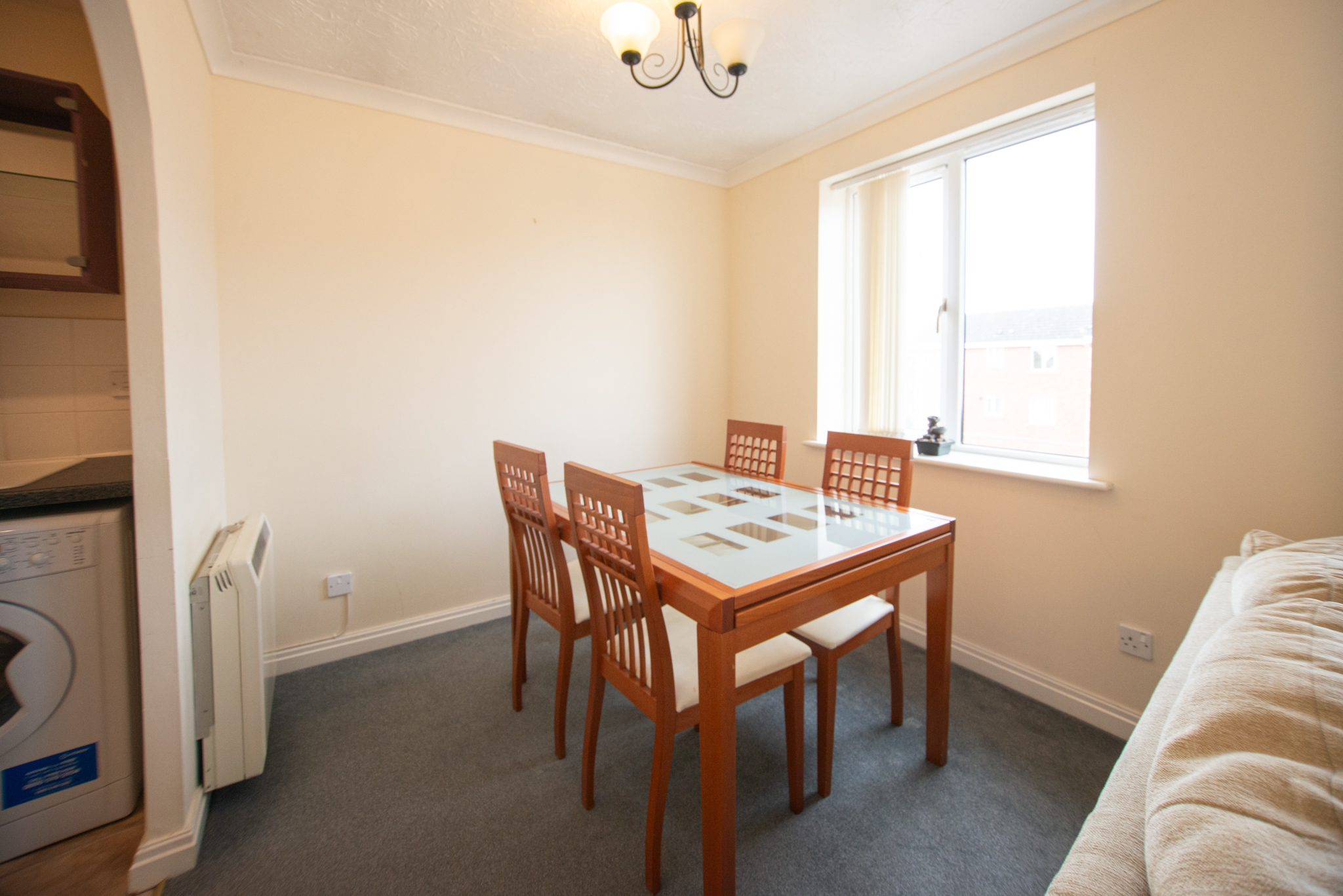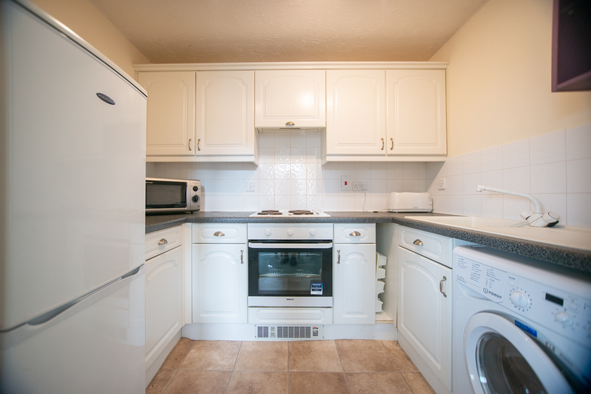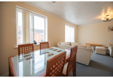 Entering the apartment you're greeted with an entrance hall, to the right there's the large lounge/dining area with area with a Juliette balcony offering views out across Victoria Dock. Connected to this room is a modern kitchen with a built-in hob and oven, a free-standing washing machine, and a fridge freezer. There are also two double bedrooms with the master having a built-in wardrobe and access to the family bathroom which includes a bath with an overhead shower and a storage cupboard.