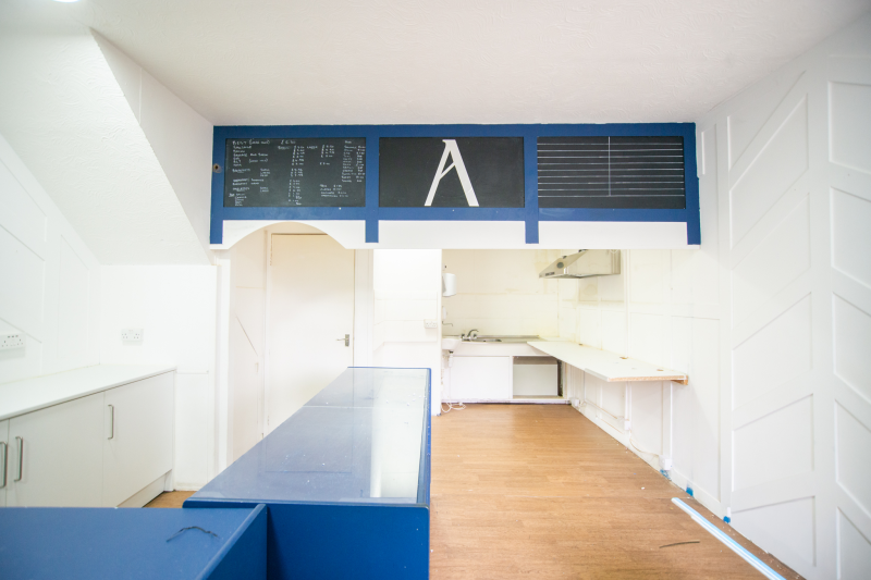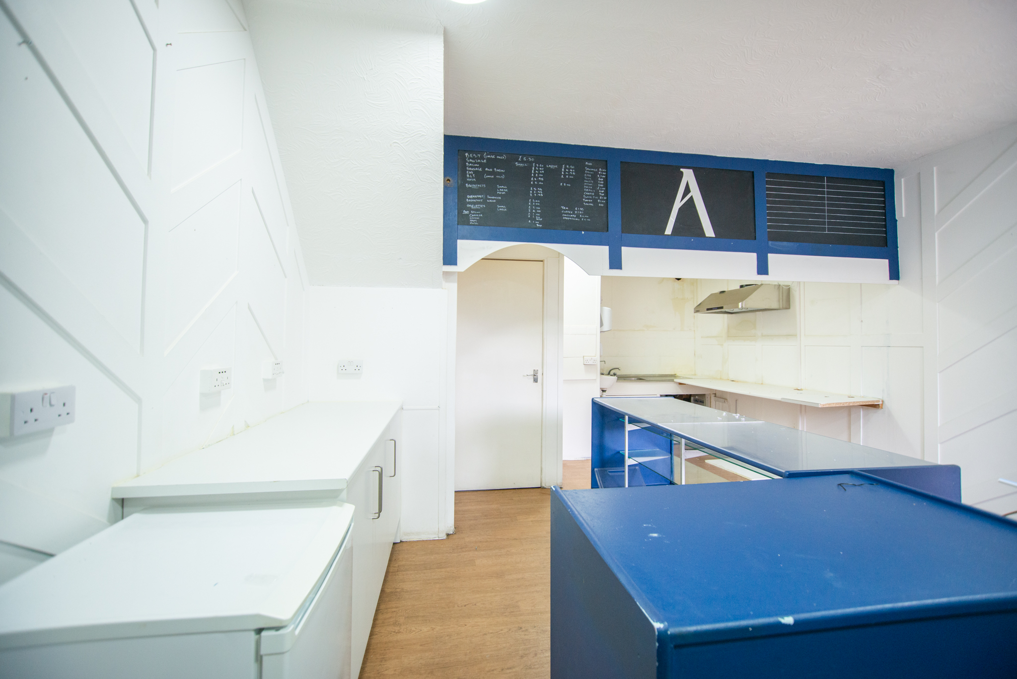 Inside, there is a fitted kitchen with a sink and enough room for an oven, a reception area and a bathroom at the back of the unit.