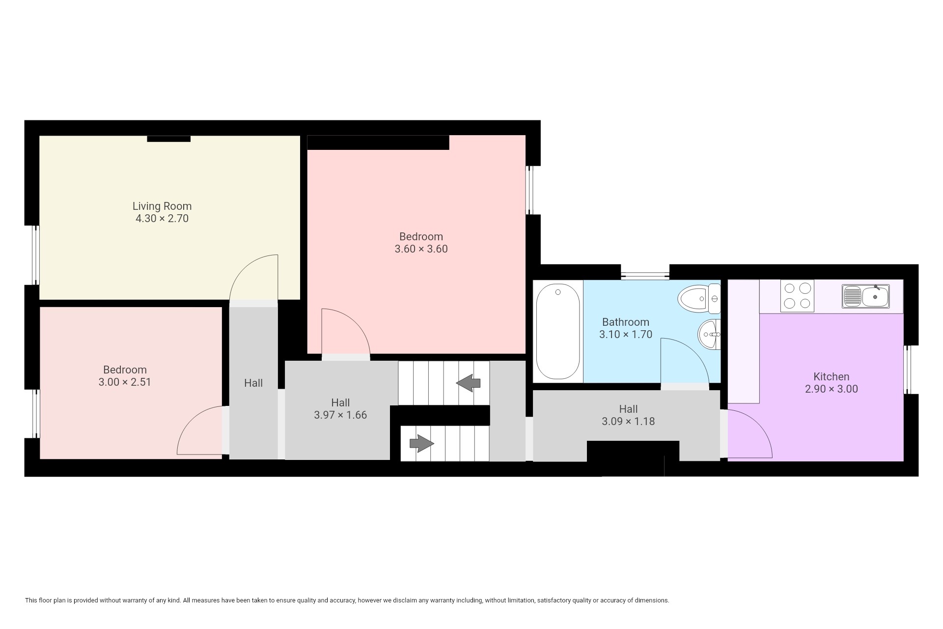 The property comprises a shared entrance hall, then once in the flat, you'll find the kitchen with a built-in hob and oven and space for a small table and chairs, the modern bathroom suite with a shower over the bath is next to this room, then the first double bedroom next to this. Towards the front is the second bedroom and the living room.