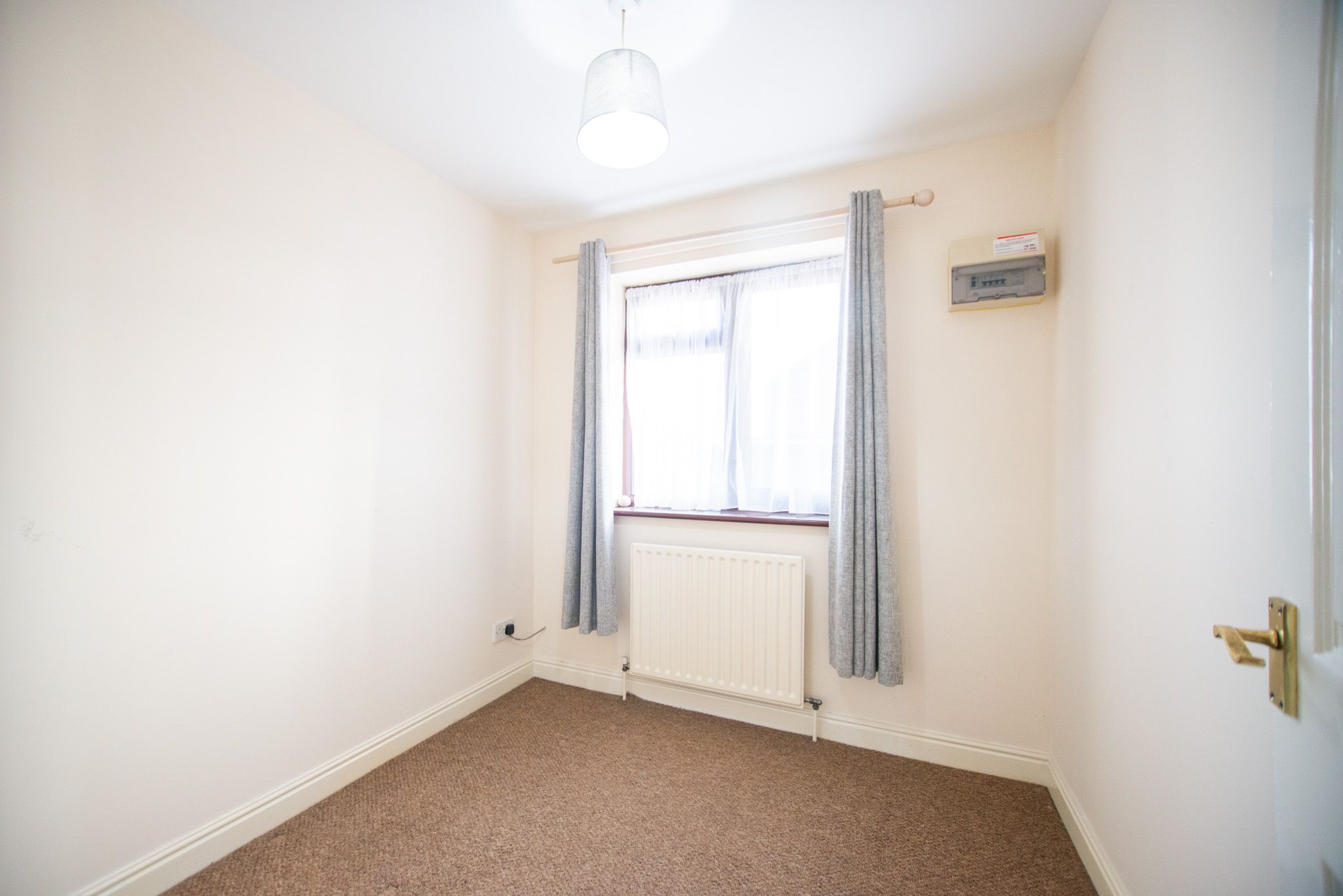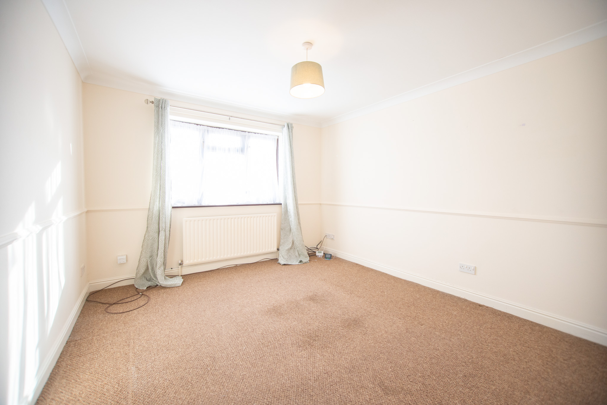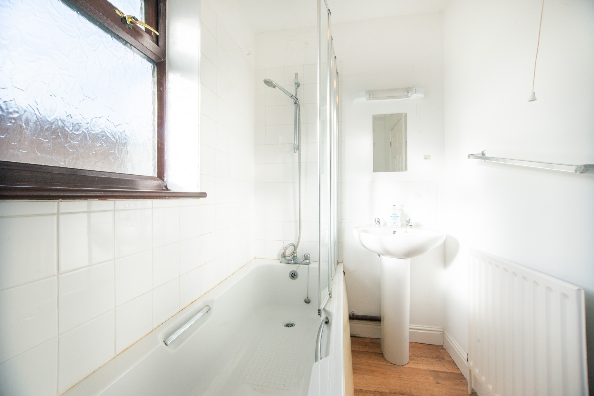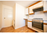 This flat comprises an entrance hall, a good-sized living room, a kitchen with a built-in hob and oven, two bedrooms and a bathroom with a shower over the bath.
