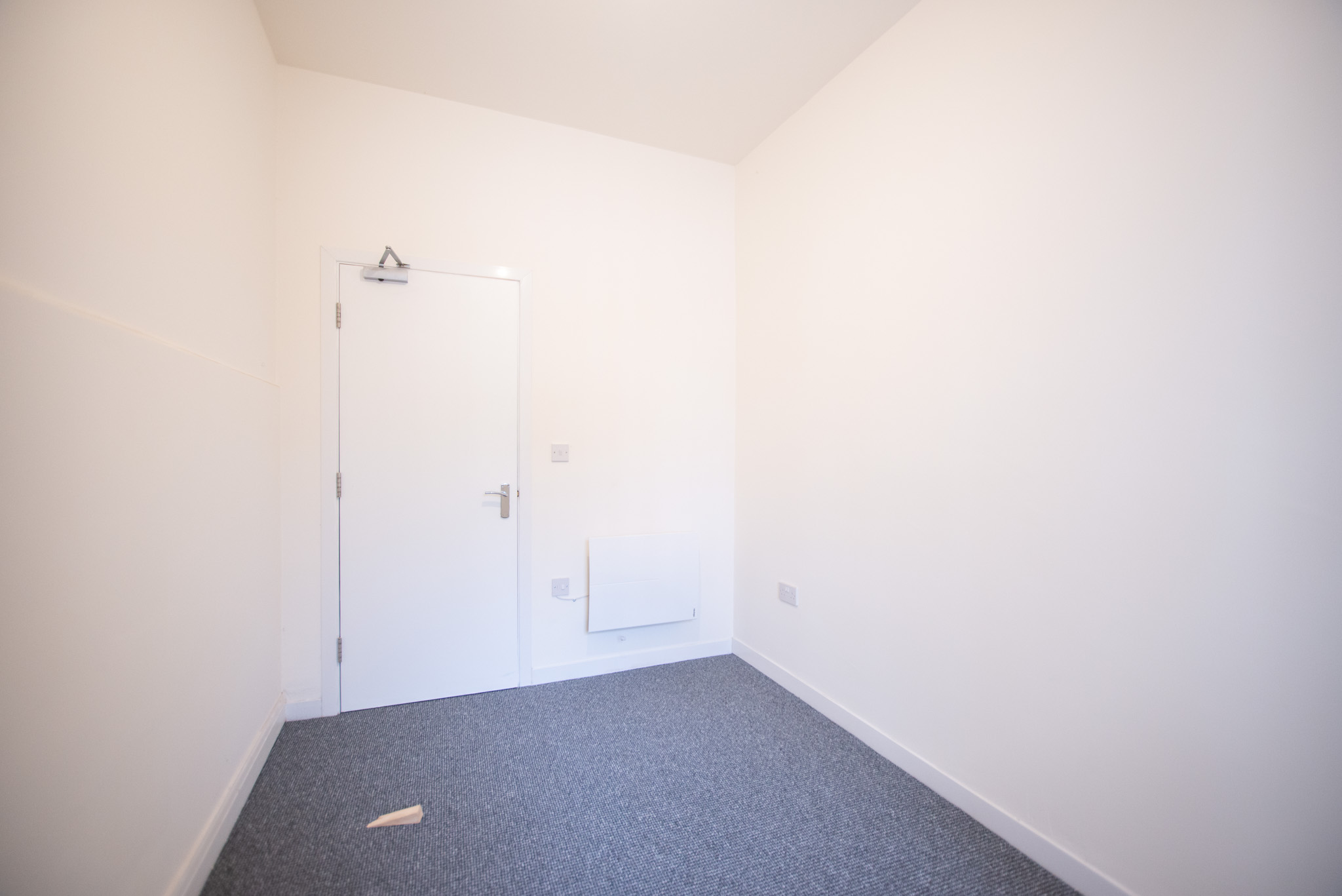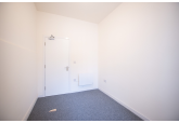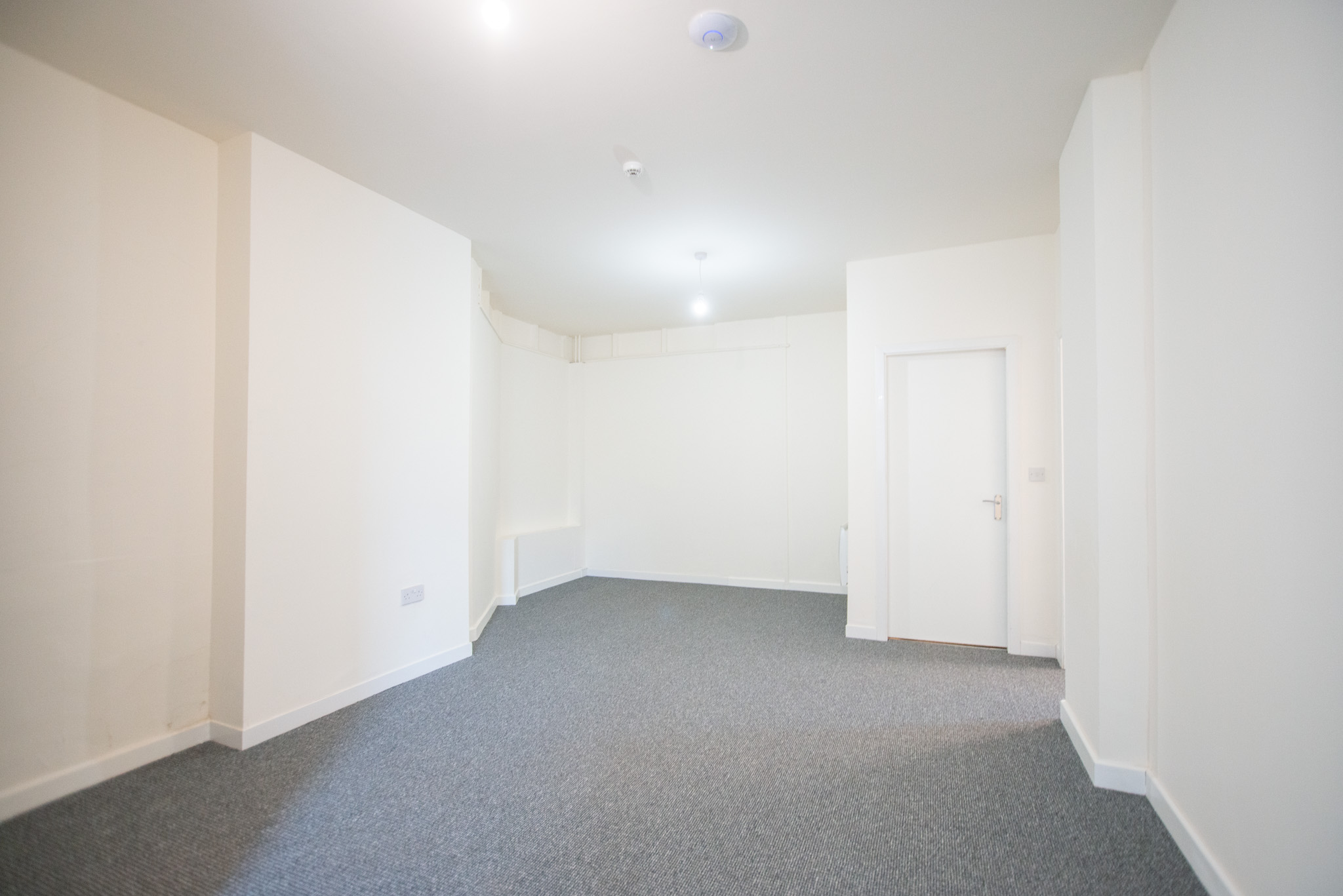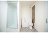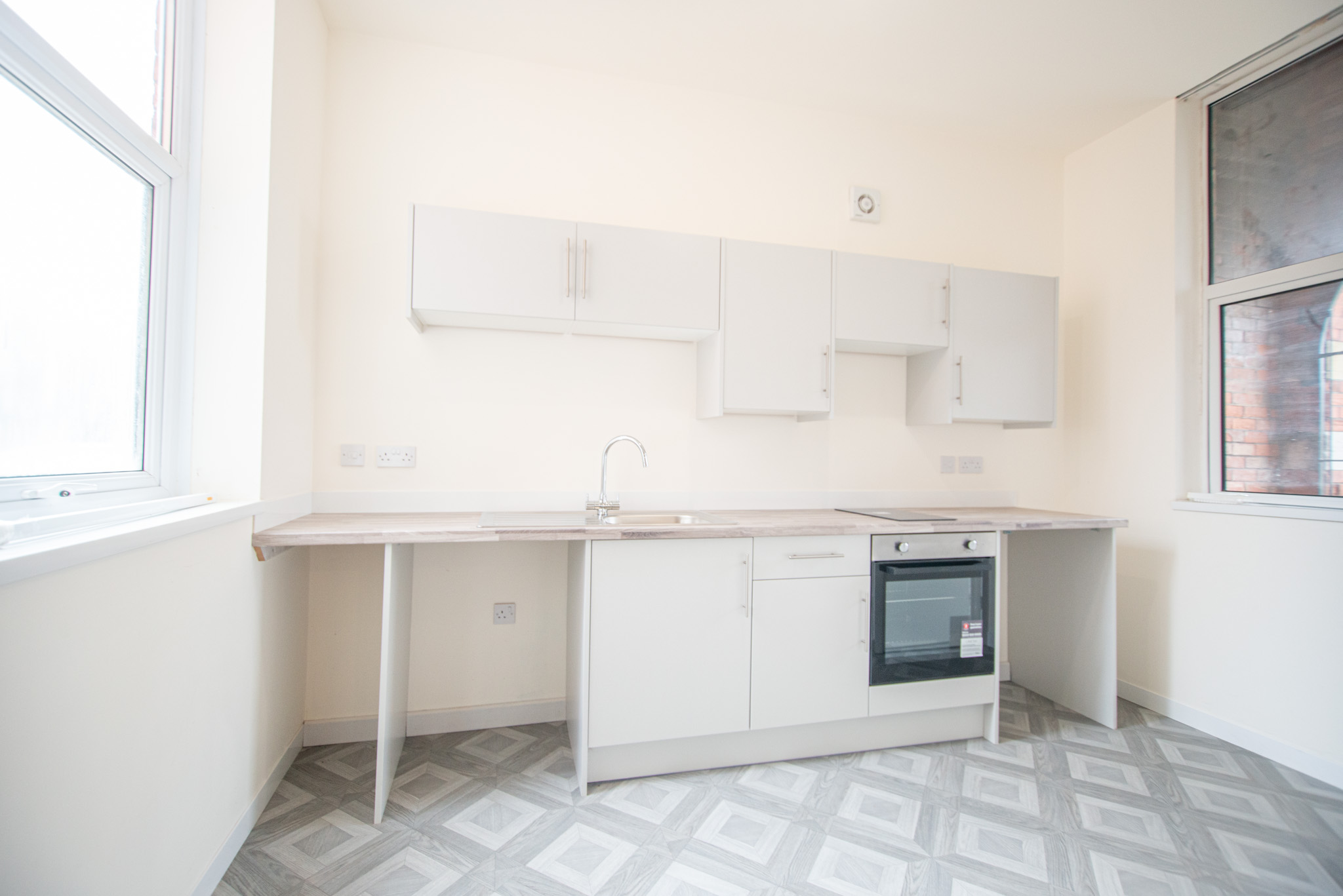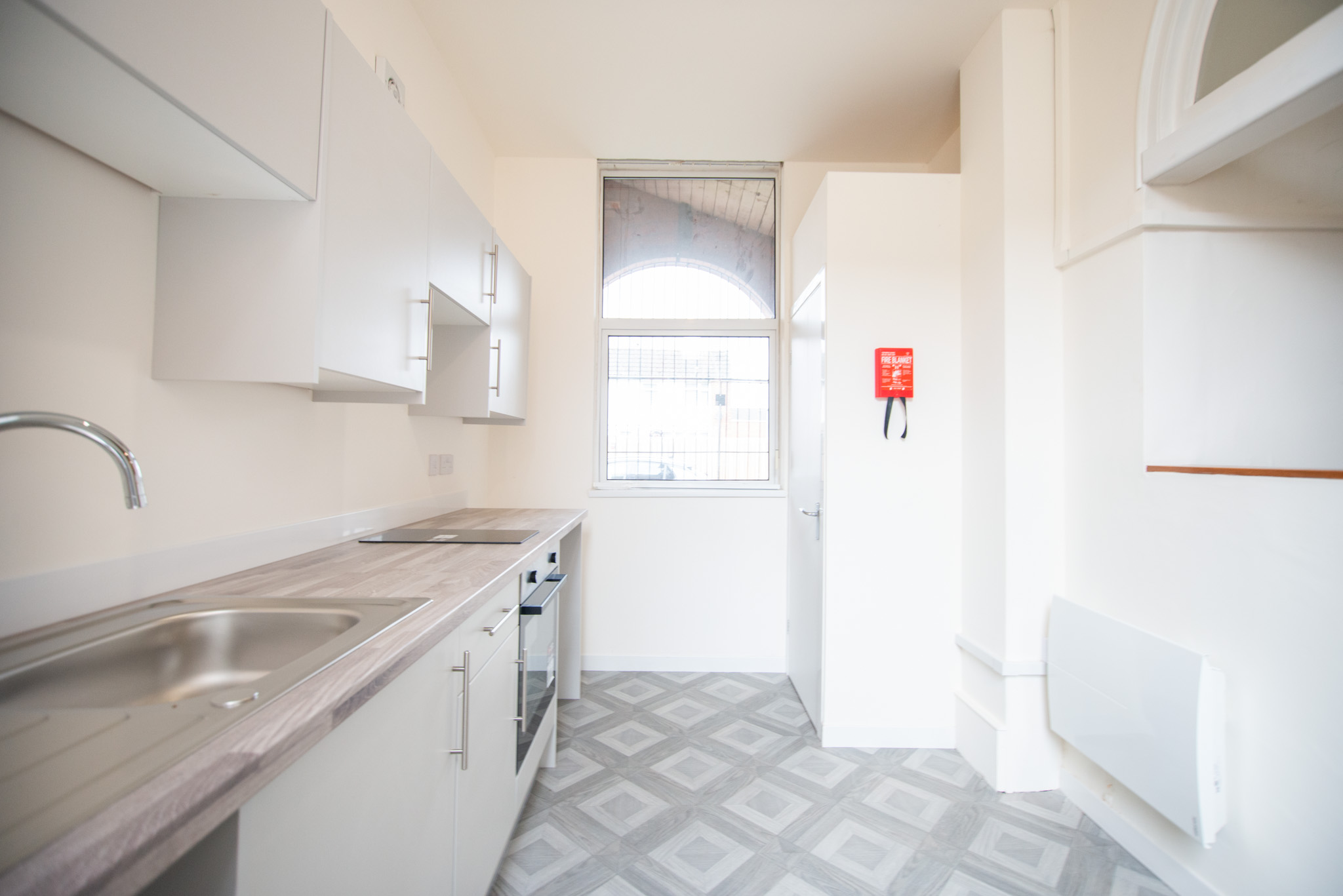 The flat comprises a small entrance hall that opens up into a large living area with the sleek and modern kitchen towards the rear that includes a built-in hob and oven. There are also two carpeted bedrooms and a shower-suite bathroom.