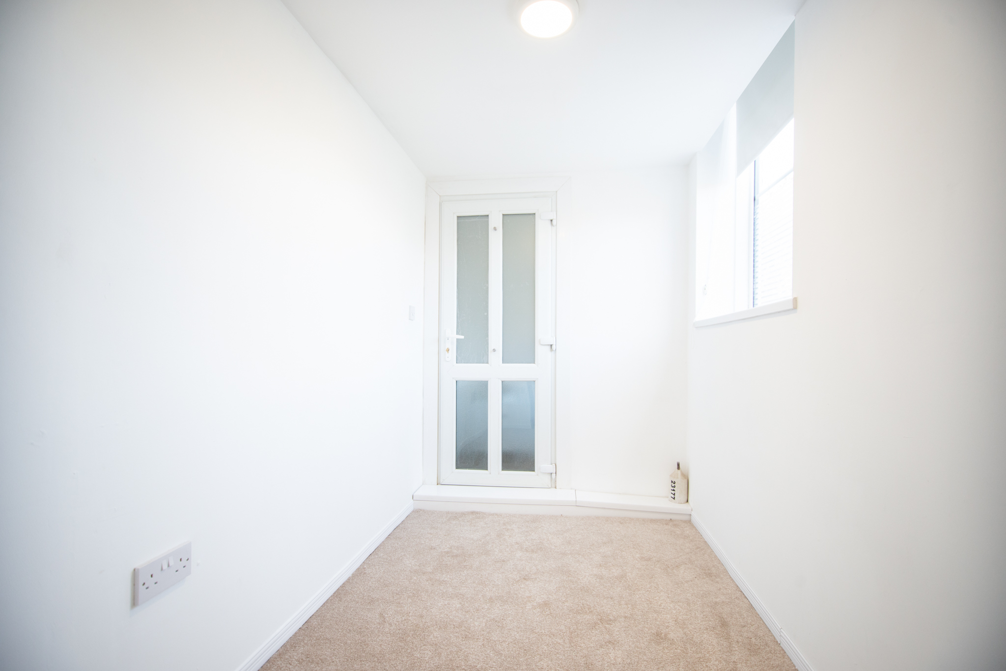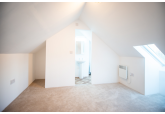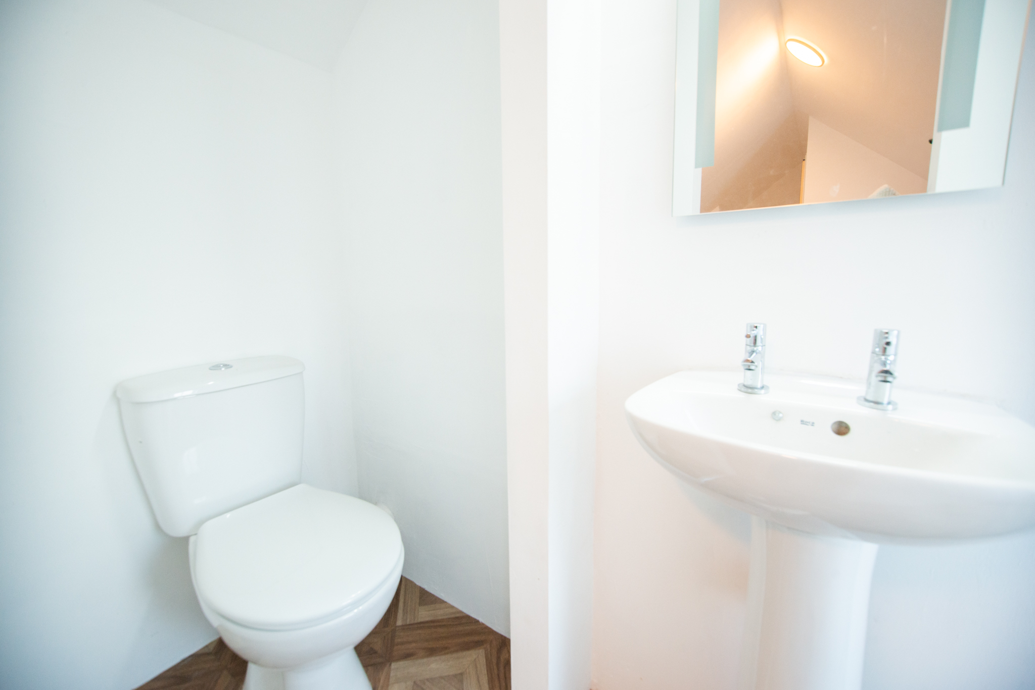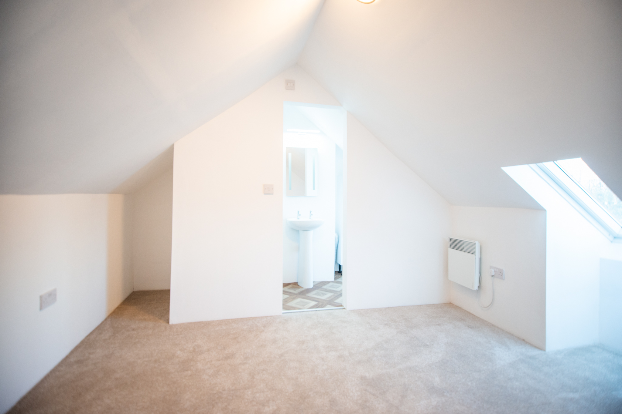 Entering the property, you are greeted by a welcoming hall, to the left is the bright and spacious living room with high ceilings and an electric fireplace. Attached to this room is the stylish kitchen with a built-in hob and oven, and plumbing for a washing machine and a slimline dishwasher. This room then leads back into the main entrance hall, where you'll find the first carpeted bedroom with a modern shower en-suite. Next to this room is the smallest bedroom, which could also double up as a home office, this room has the second shower suite bathroom attached to it. Upstairs is a charming loft-style bedroom that includes its own private W/C. Finally, there is a small patio to the side of the house with enough room to fit a small table and chairs.