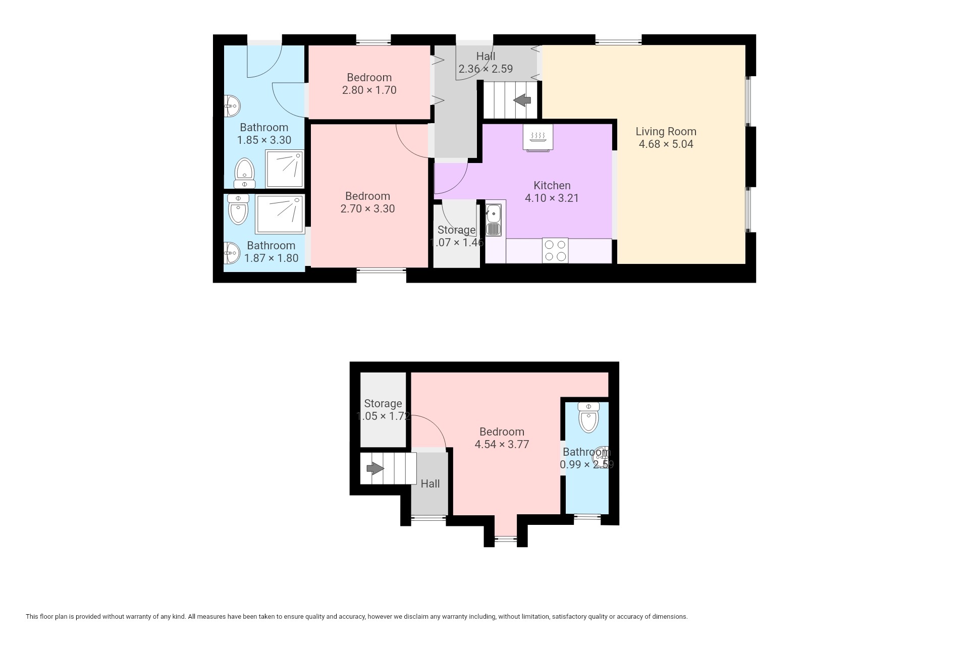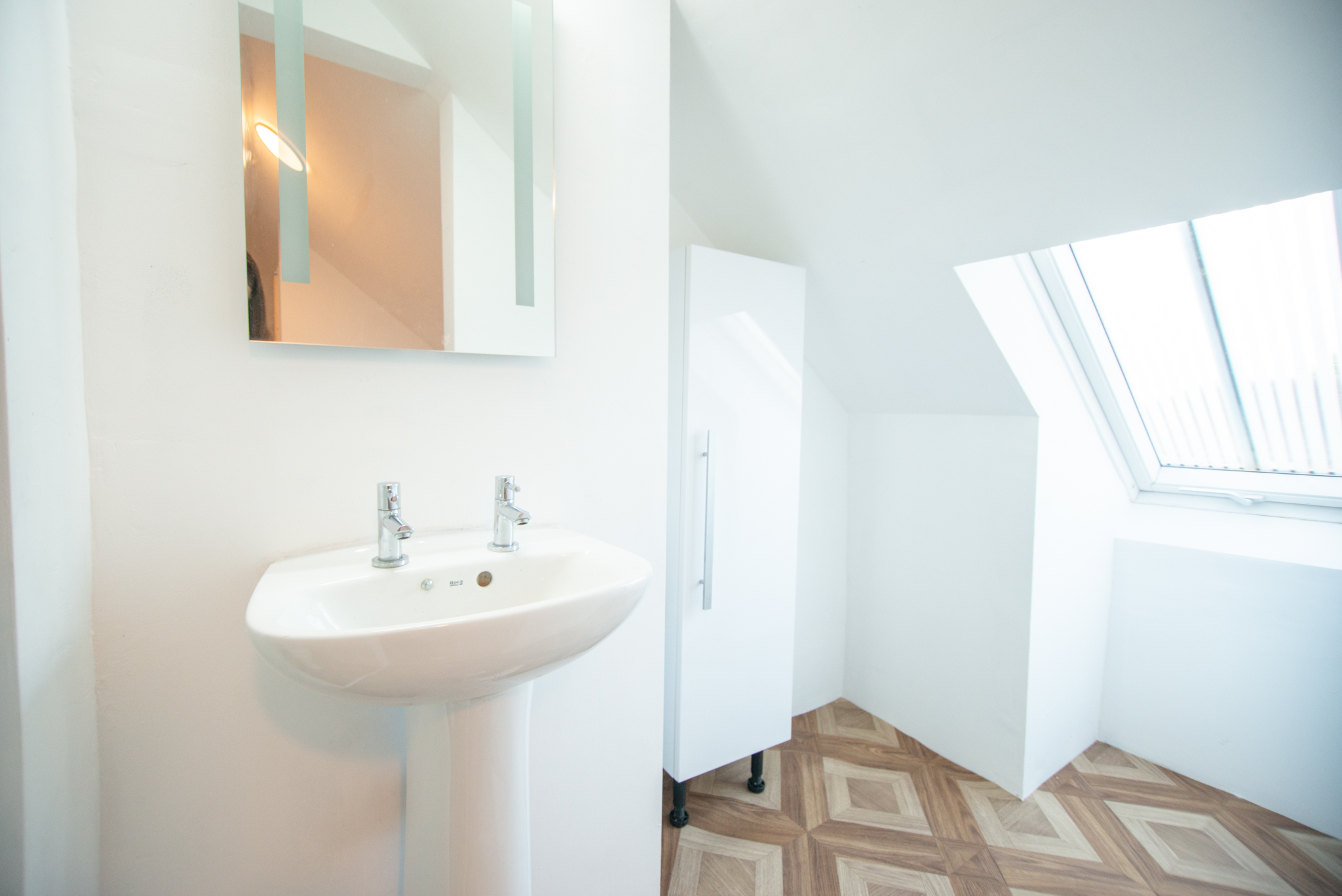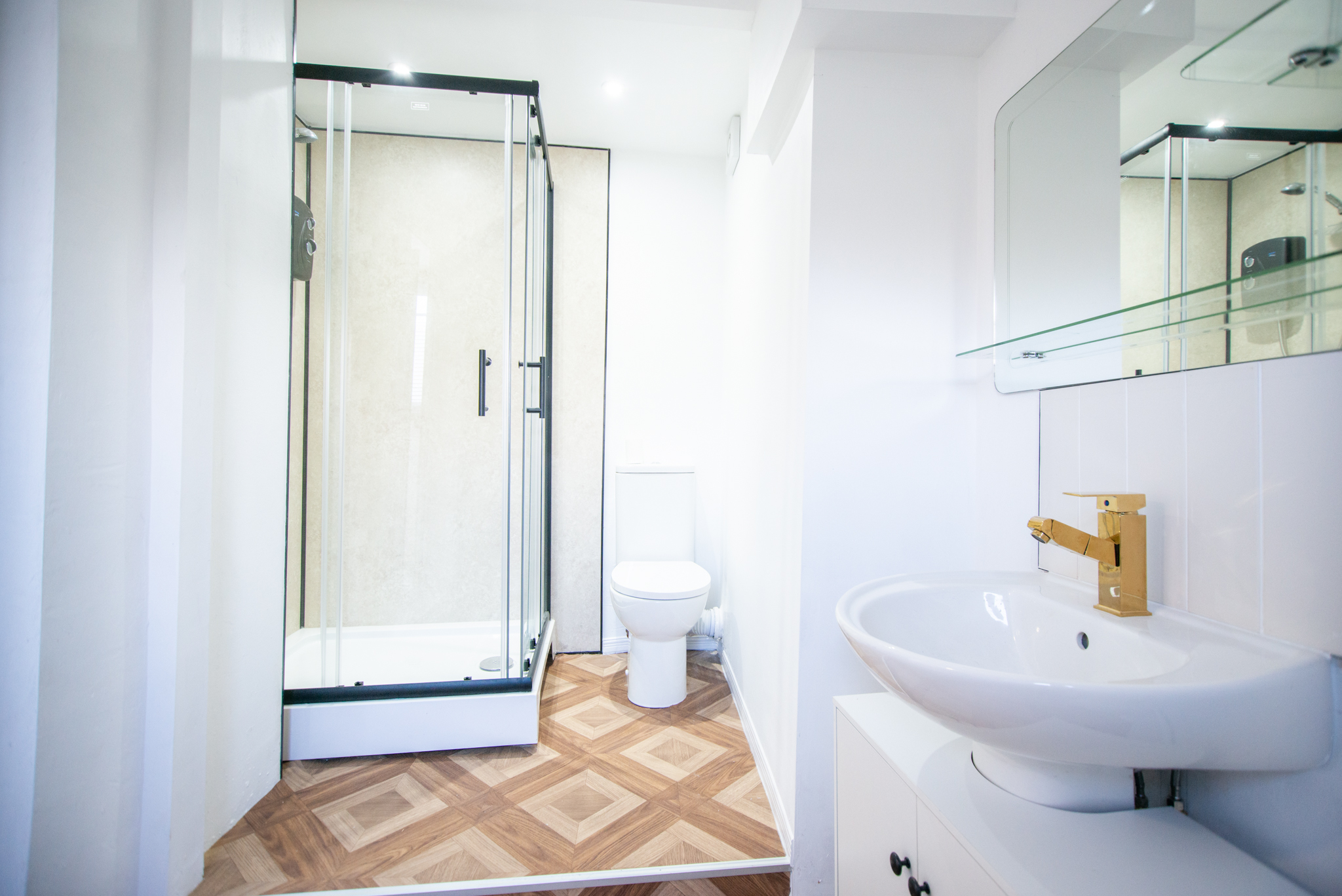 Entering the property, you are greeted by a welcoming hall, to the left is the bright and spacious living room with high ceilings and an electric fireplace. Attached to this room is the stylish kitchen with a built-in hob and oven, and plumbing for a washing machine and a slimline dishwasher. This room then leads back into the main entrance hall, where you'll find the first carpeted bedroom with a modern shower en-suite. Next to this room is the smallest bedroom, which could also double up as a home office, this room has the second shower suite bathroom attached to it. Upstairs is a charming loft-style bedroom that includes its own private W/C. Finally, there is a small patio to the side of the house with enough room to fit a small table and chairs.